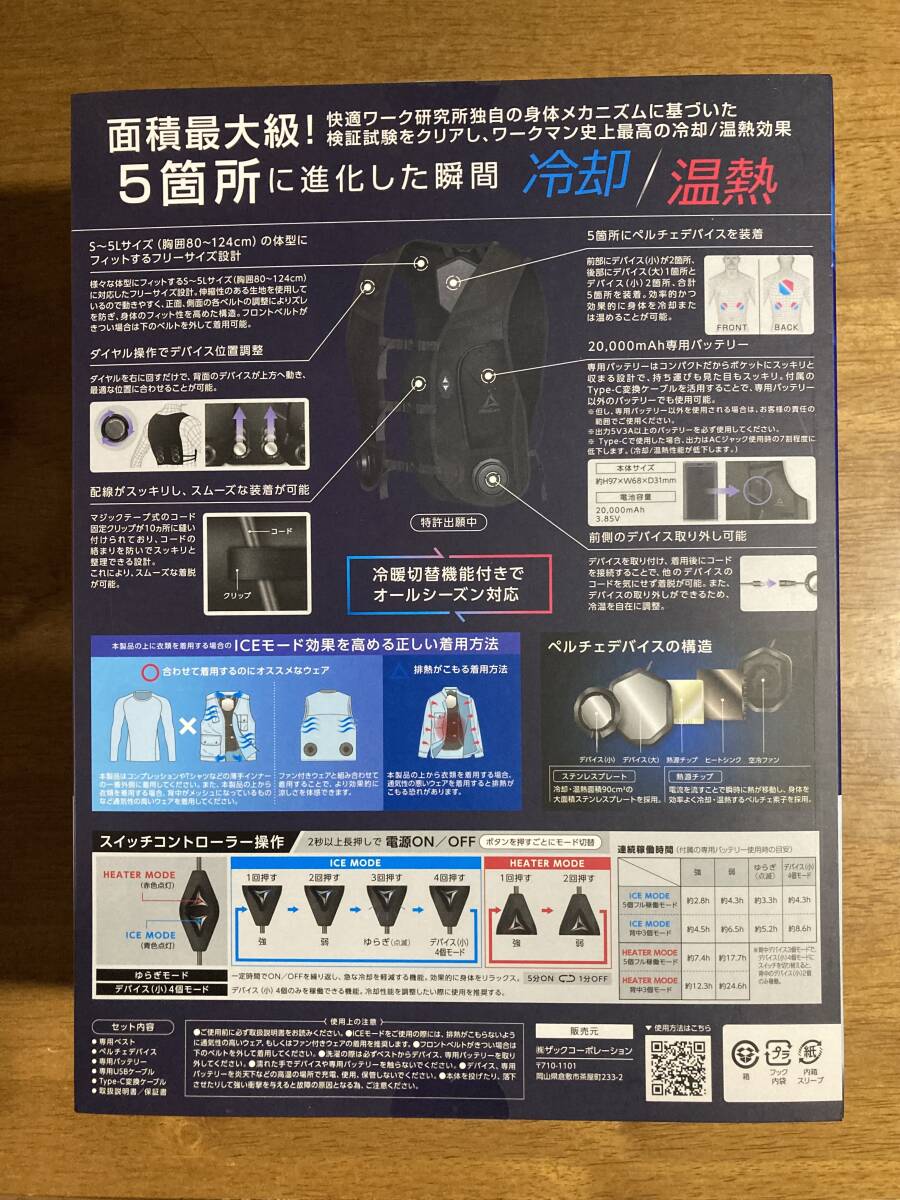 Workman WindCore ICE×HEATER(ワークマン ウィンドコア アイス×ヒーター)冷暖房服 ペルチェベストPRO フリーサイズ