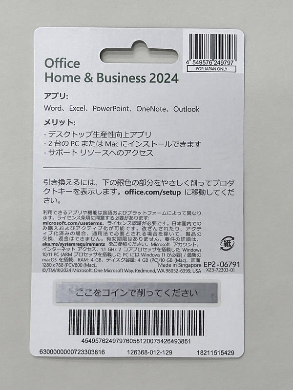 Microsoft Office Home & Business 2024 永続版 (POSAカード版)