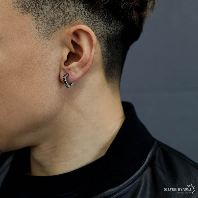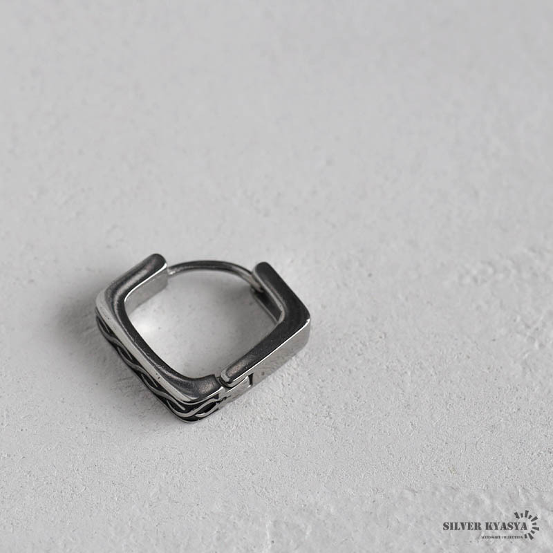 Product name: ひし形 フープピアス ステンレス メンズ シンプル ピアス シルバー 紋章 燻し風加工 金属アレルギー対応 片耳 1点