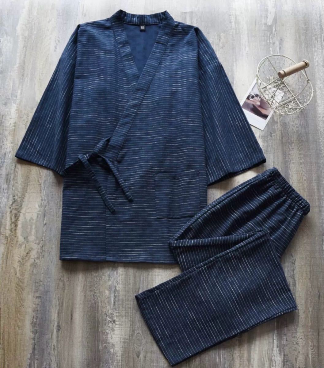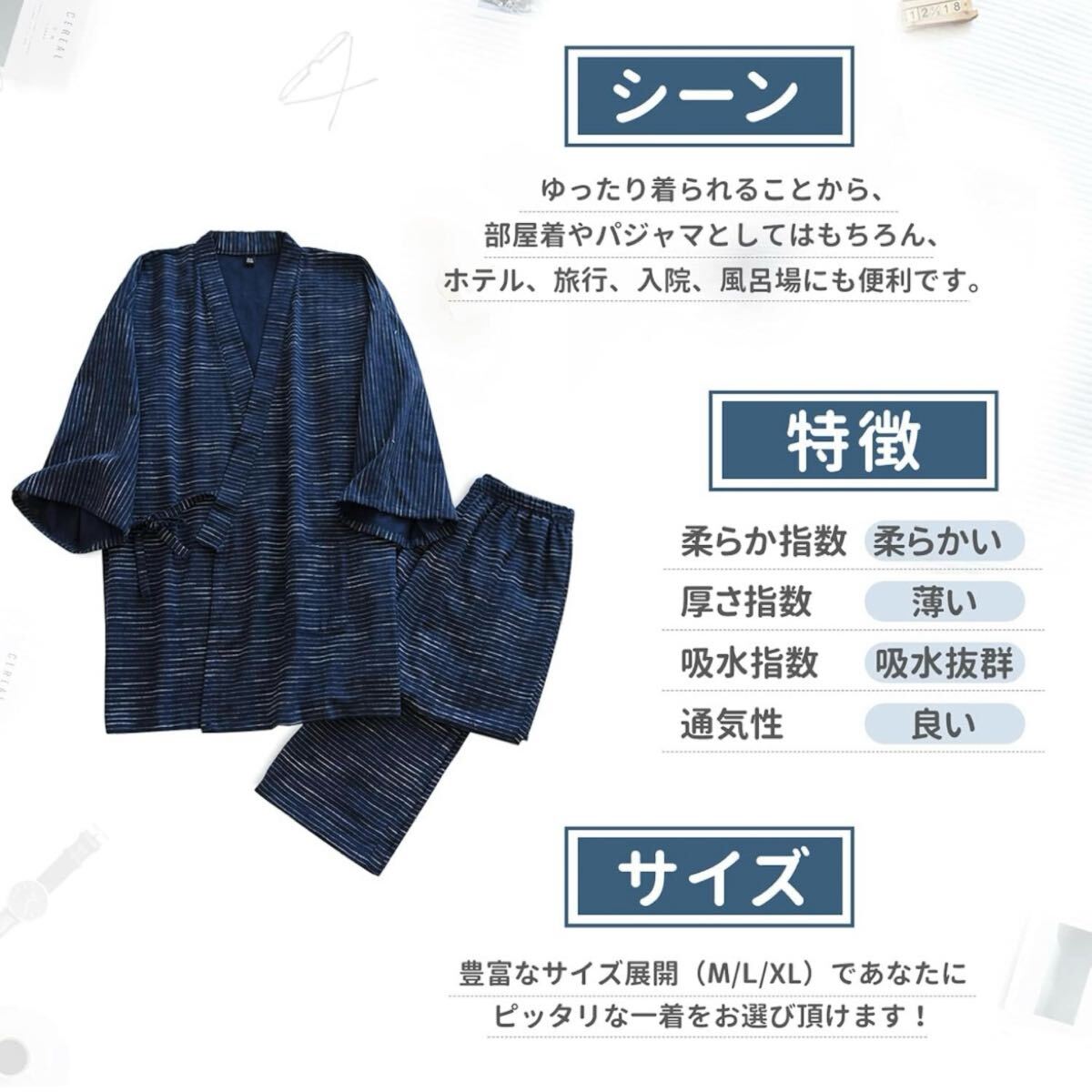 Product name: 新品甚平 部屋着 上下セット L作務衣 じんべい メンズ 未使用 半袖夏入院入所介護薄め