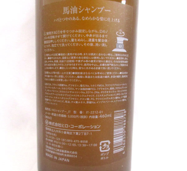 Product name: 送料300円(税込)■ic899■ヒロ・コーポレーション 馬油シャンプー 460ml 日本製 3本【シンオク】