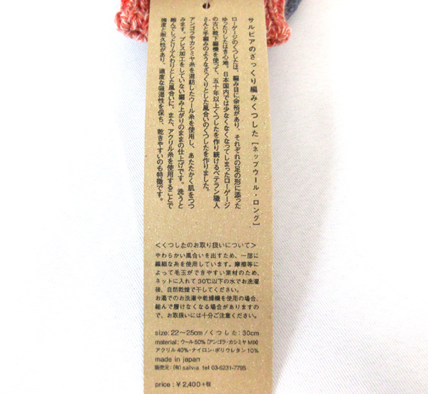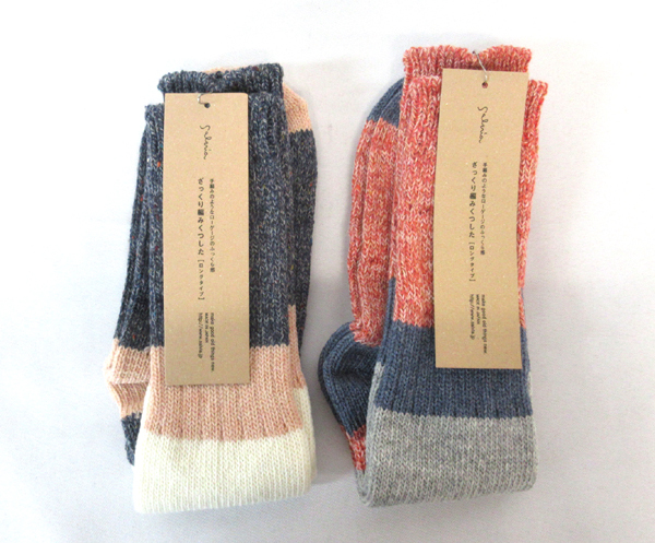 ローゲージ編みのやわらかなロング丈の靴下です。