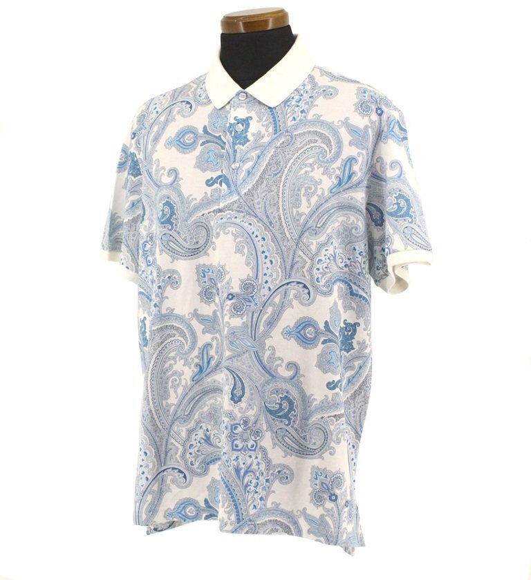 Product name: 8万新品◆XL◆エトロ◆【ETRO】フローラルペイズリープリント ペガソロゴ刺繍 半袖ポロシャツ ライトブルー水色系 1円