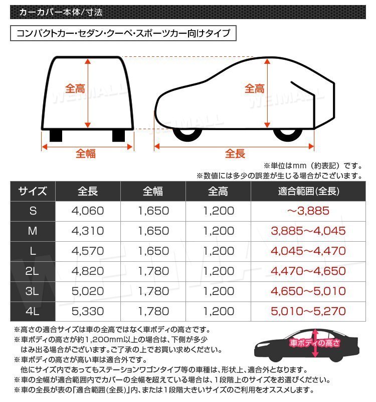 Product name: 【数量限定セール】カーカバー ボディーカバー 裏起毛 軽自動車 不織布 風対策 雨の日 ボディカバー 雪 車体保護 車体カバー 強風 3Lサイズ
