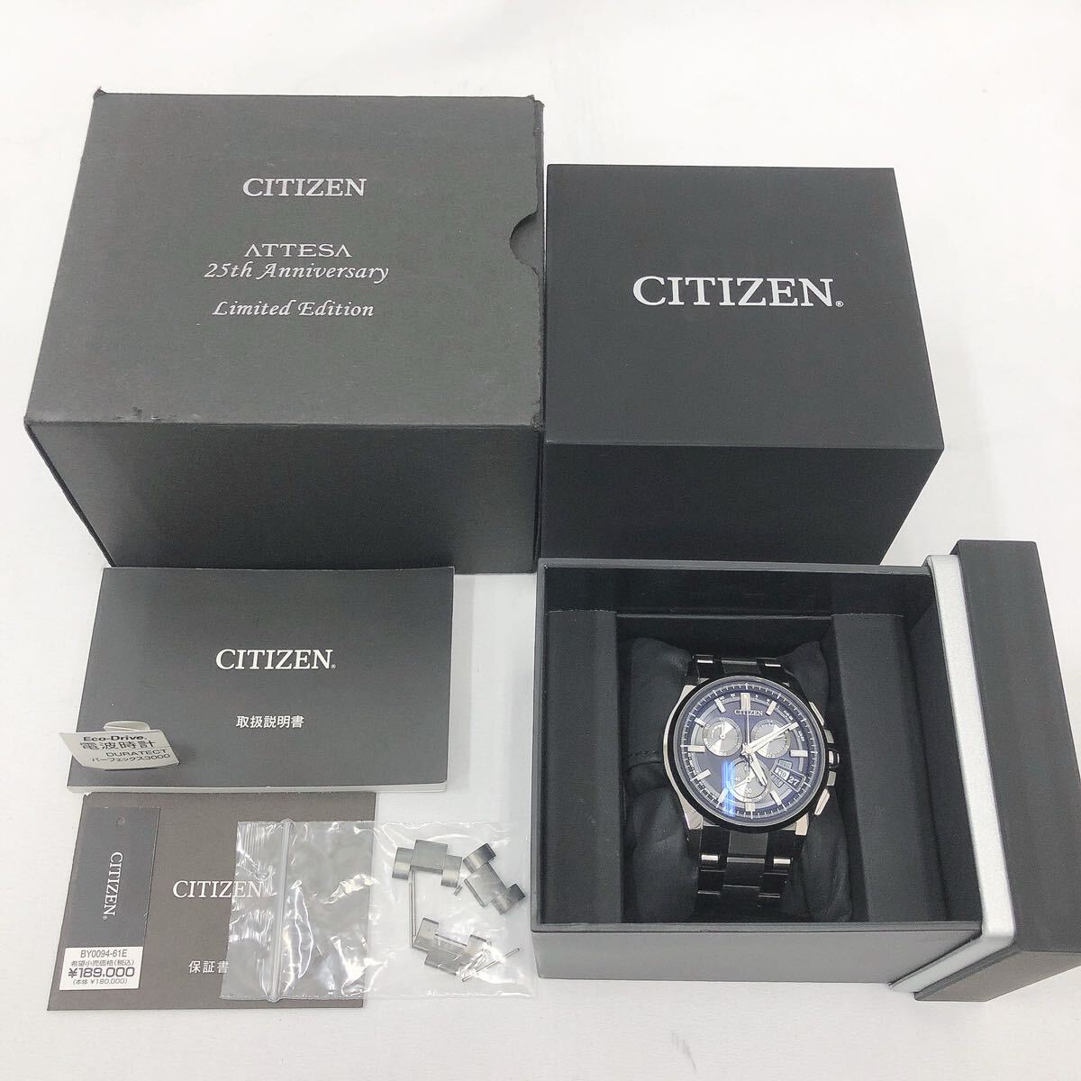 稼働品 CITIZEN シチズン H610-T018891 25th記念モデル アテッサ ソーラー 黒文字盤 メンズ腕時計 箱説コマ 他付属 R野0628
