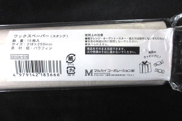 送料300円(税込)■bv375■(250418)ラッピング用品 ワックスペーパー スタンプ 15枚入(EEV24-019) 300点(4500枚)【シンオク】