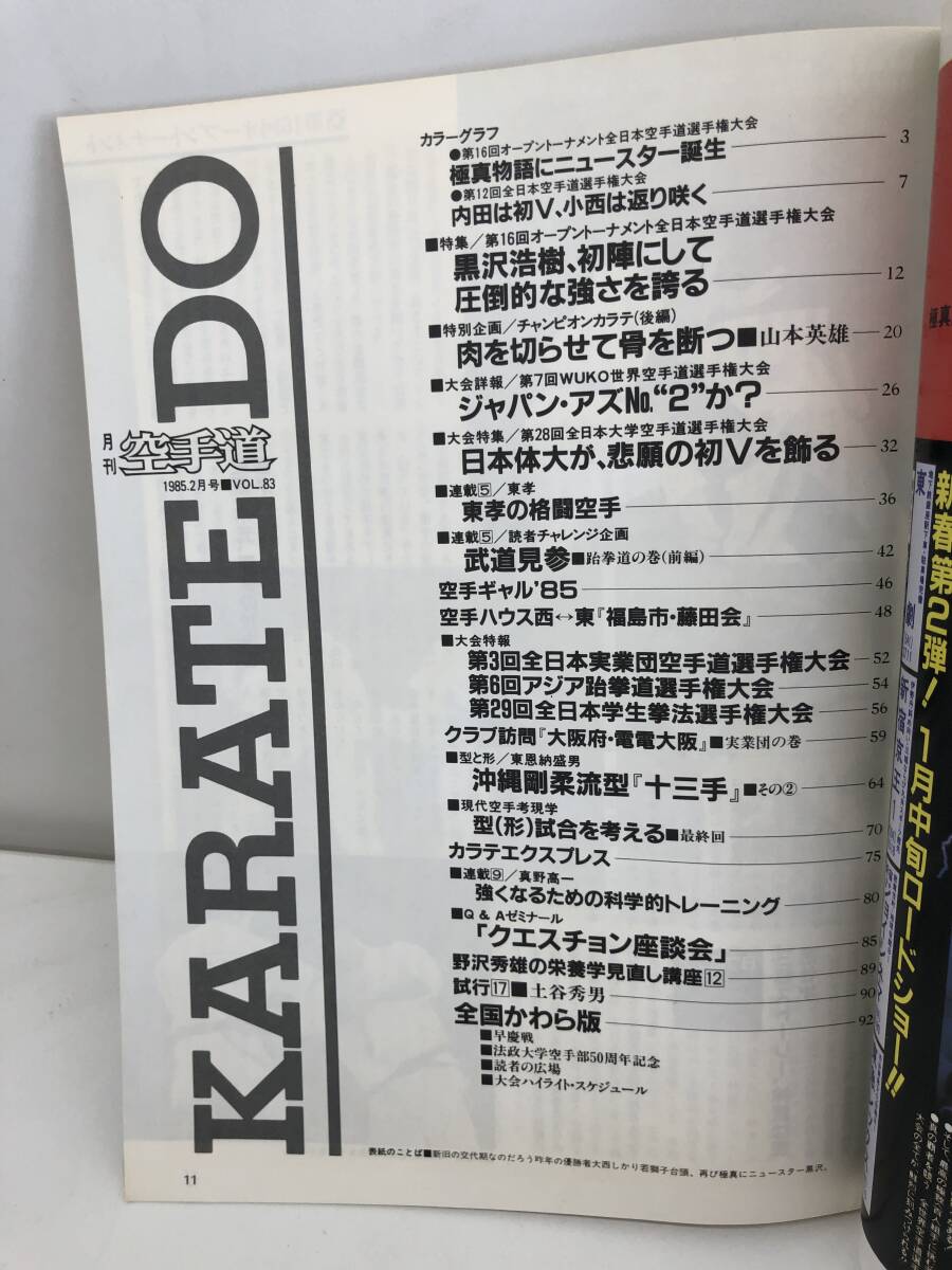 ⑨_A1◆月刊空手道1985年2月号 Vol.83◆古書 スポーツ雑誌 月刊誌 第16回オープントーナメント全日本空手道選手権大会  福昌堂