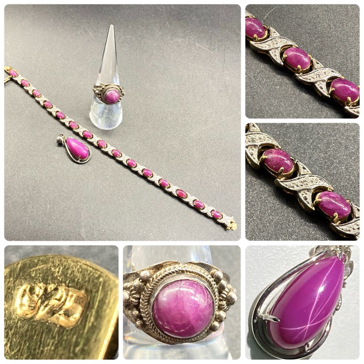 ルビー/トルマリン/ダイヤ付き入り!![アクセサリーおまとめ]a 約153.6g ネックレス リング ピアス ブレス ガーネット スター 925 C940