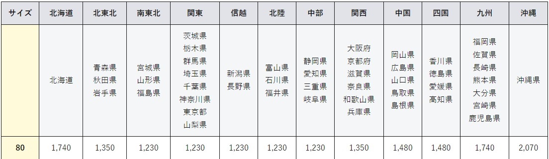 【ヤマト宅急便送料一覧表】