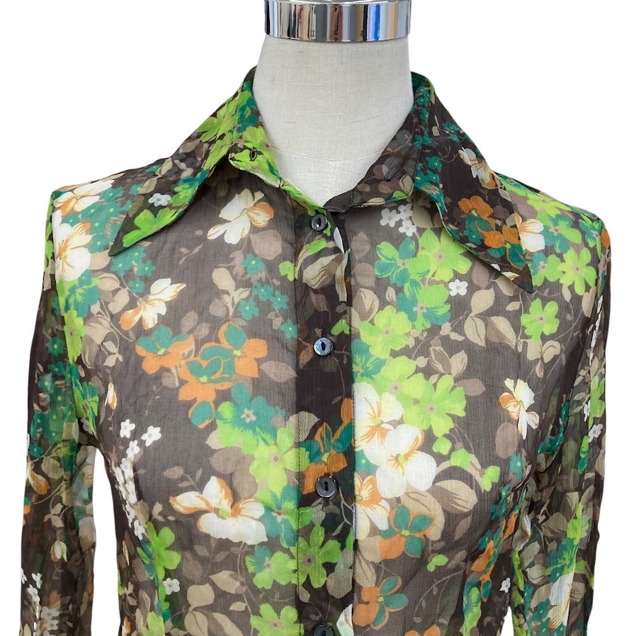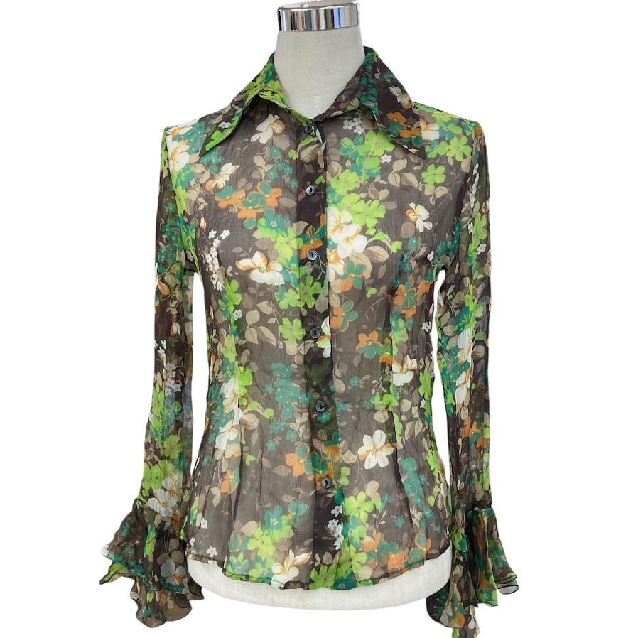 Product name: 【ITBUCU72JCJK】D&G ドルチェ&ガッバーナ ブラウス シャツ 長袖 トップス ブラウン 花柄 レディース サイズ40