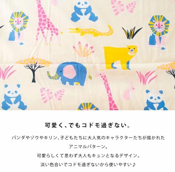 可愛い動物が一面に描かれた敷き布団カバーです。