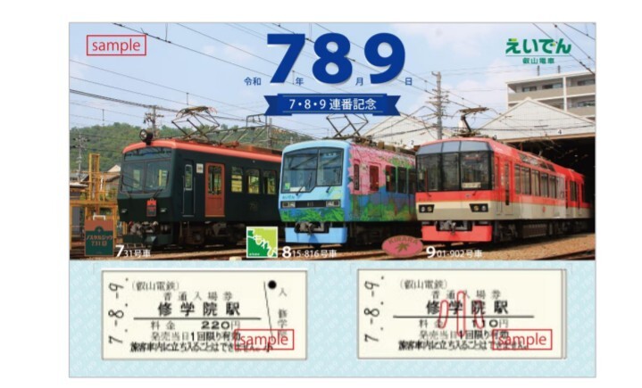 Product name: 叡山電鉄 7・8・9連番記念硬券入場券セット