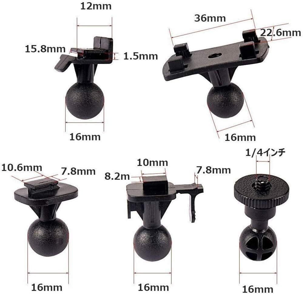 ●【幅広い用途】99%ダッシュカムに適した5種類のジョイントが付属しています。ほとんどのカーダッシュカメラ、GPS、アクションカメラに適したジョイントキットです。この種のマウントは、ミラーの裏側にスペースがあるバックミラーに使用する必要があります。