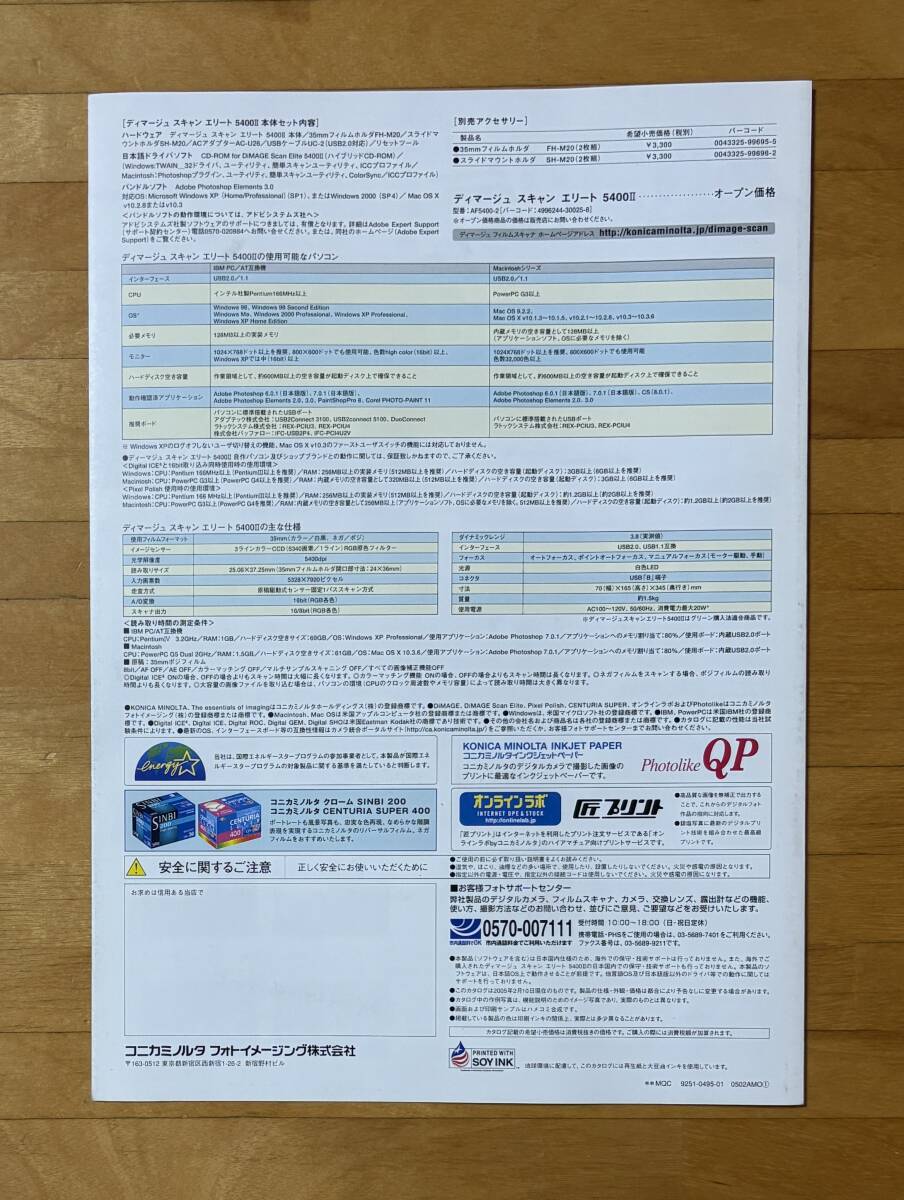 Product name: コニカミノルタ ディマージュ スキャン エリート 5400Ⅱ 発売当時のカタログ