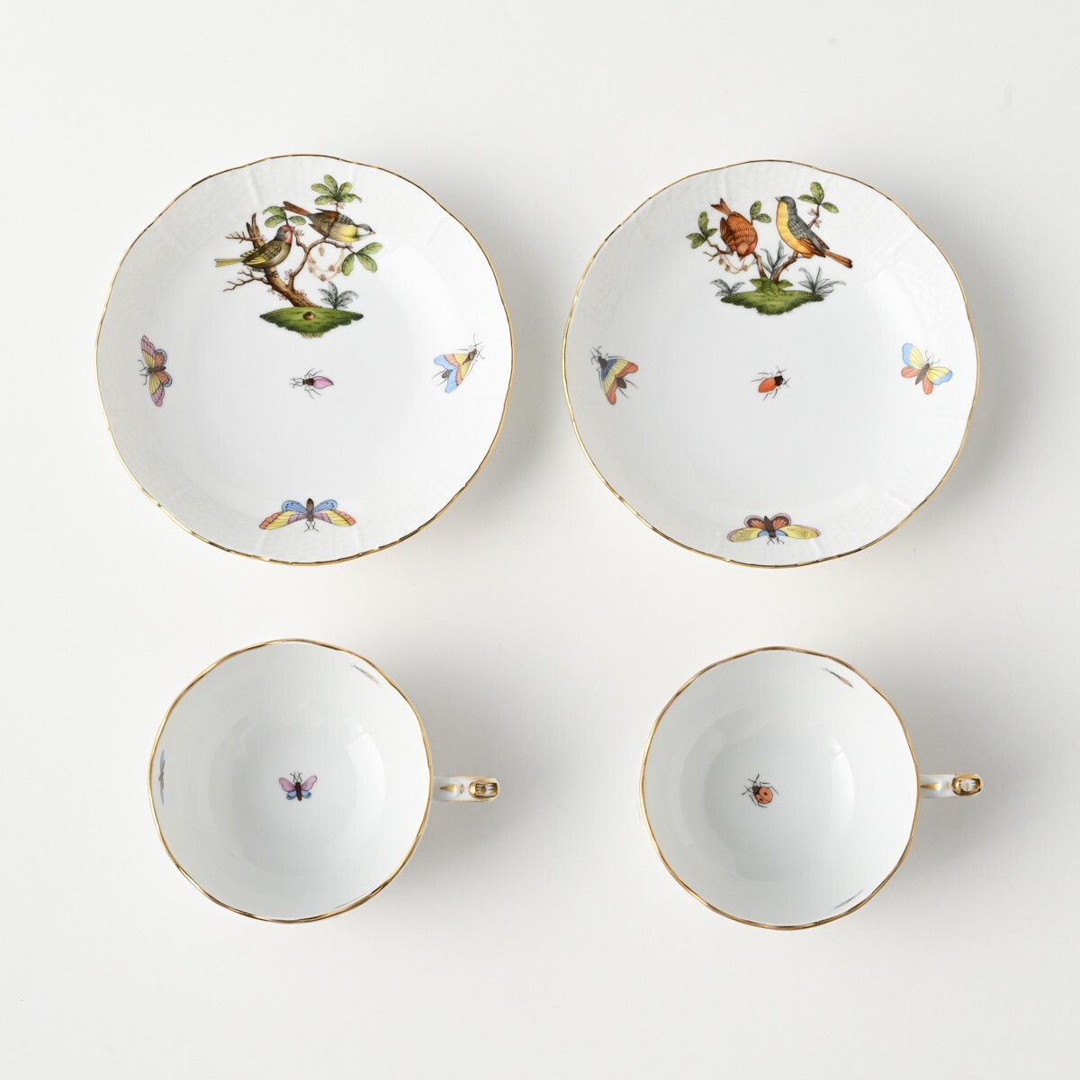 ヘレンド ロスチャイルドバード ティーカップ&ソーサー 2客 カップ口径約90mm ソーサー 直径約135mm 金彩 ハンドペイント Herend 洋食器