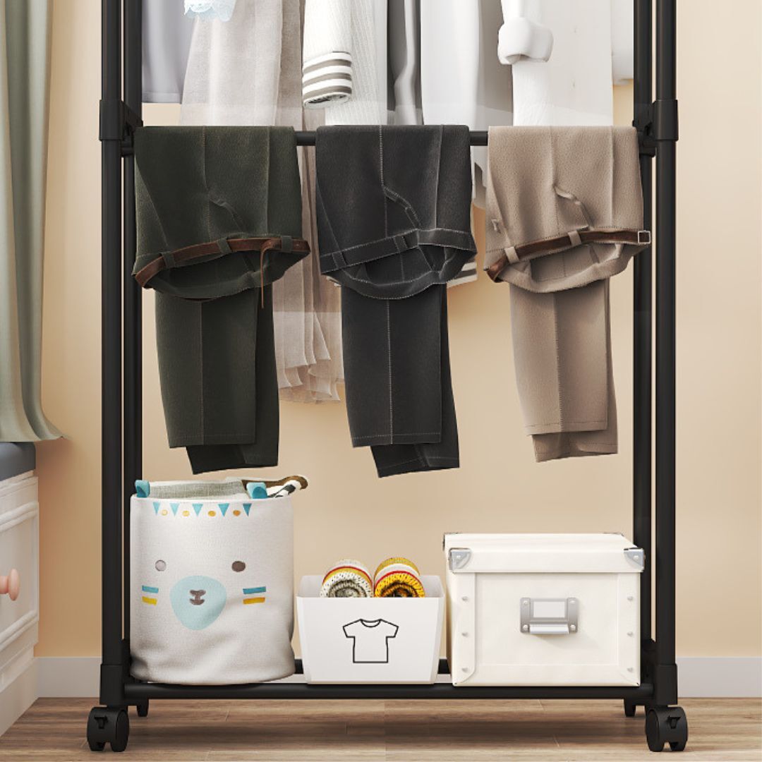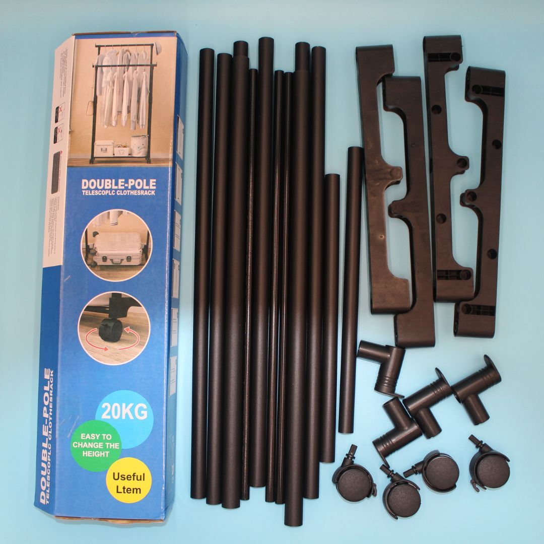 Product name: ハンガーラック 2段 ブラック黒 キャスター付 ダブル スチール 簡単組立式 パイプ 衣装干し 部屋干し 収納 スリム洗濯物 軽量 クローゼット
