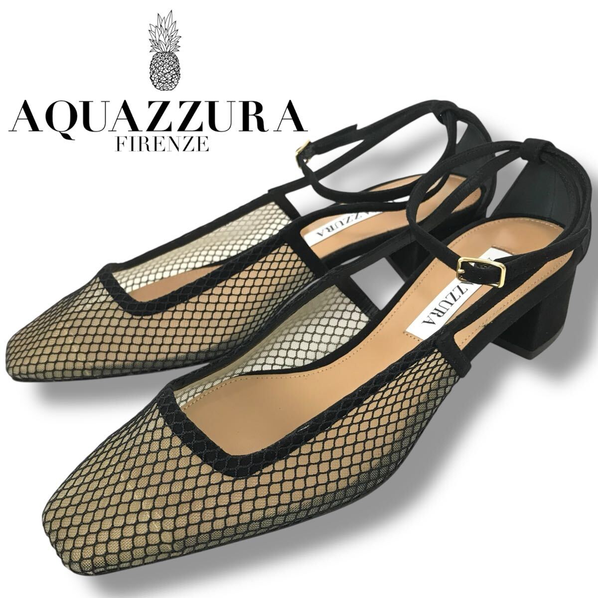 b75 新品未使用 Aquazzura アクアズーラ Forbidden Love Pump Black メッシュ パンプス 36.5 イタリア製 アンクルストラップ 正規品