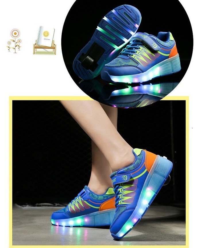 1スタ☆光る☆LED ライトアップスニーカー&ローラーシューズ 一体型 【K-162ブルー 24cm】夜間 スケート靴 反射材 ジョギング 自転車