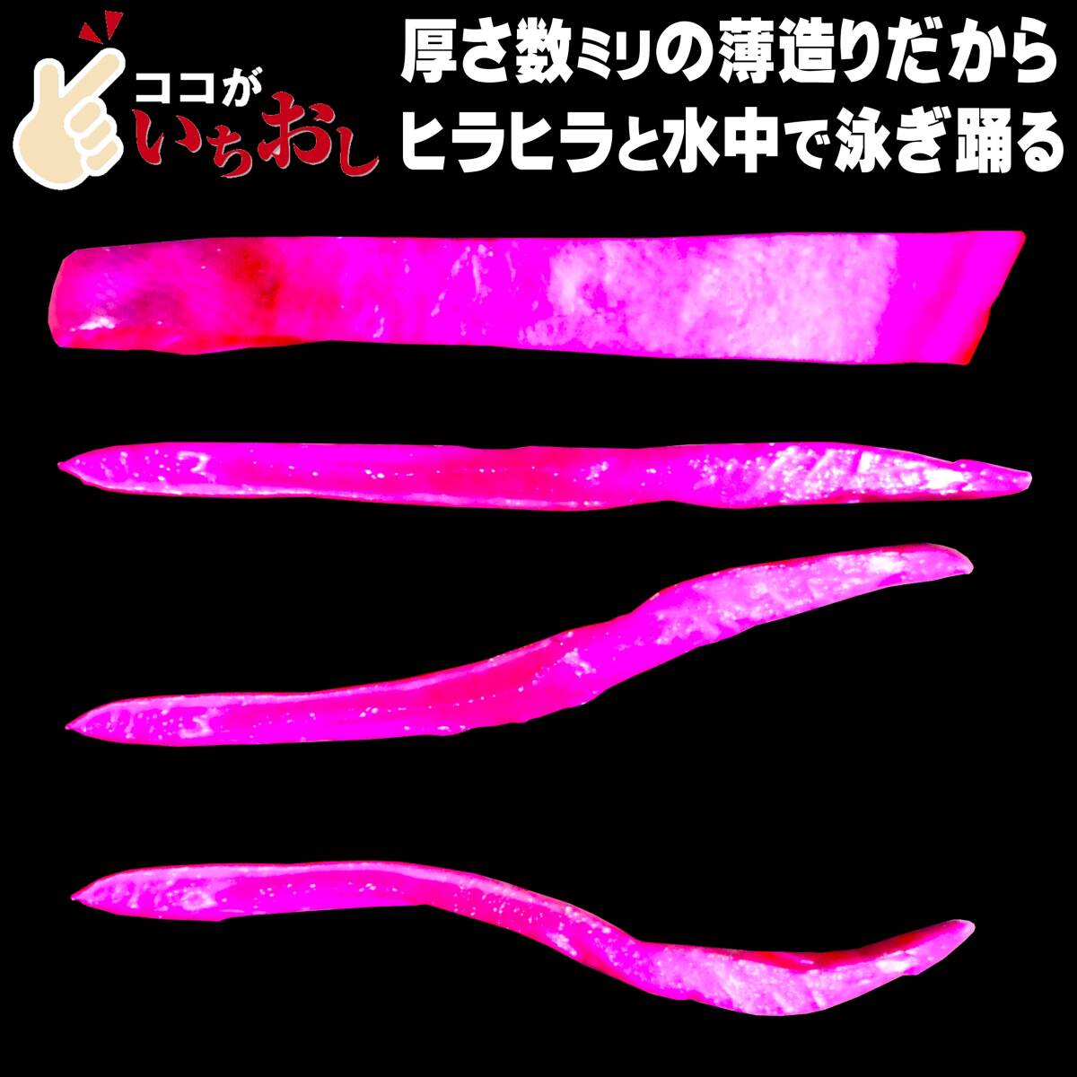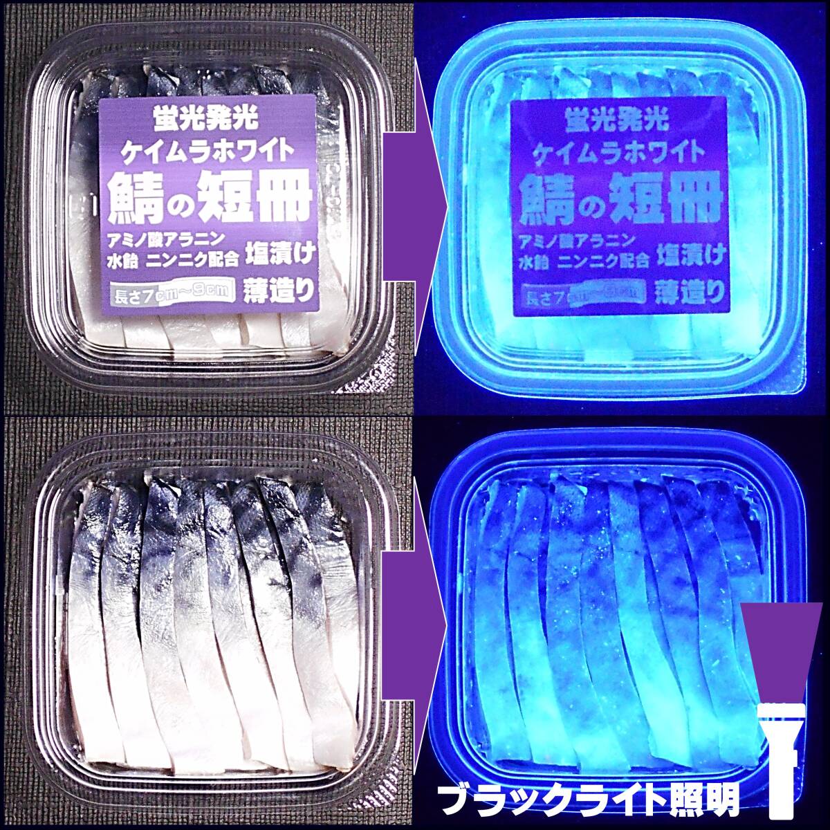 刺し餌 アラニン・激臭ニンニク・水飴配合 蛍光発光 ケイムラホワイト&レッド サバ 短冊 塩漬け 長さ 7cmから9cm 15枚入 2色組 サバタン