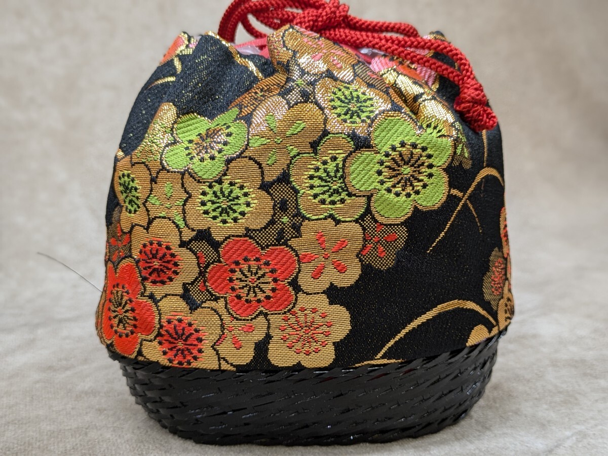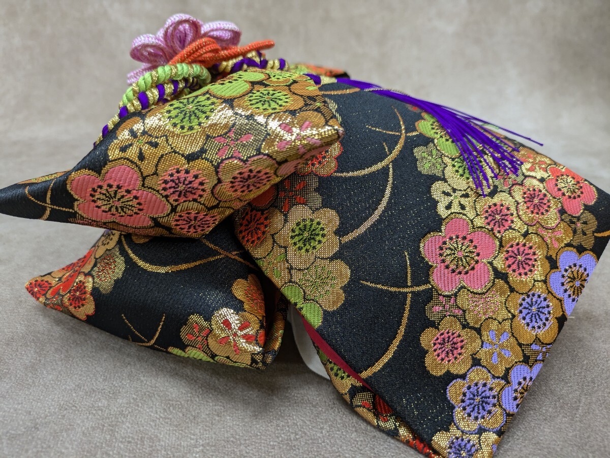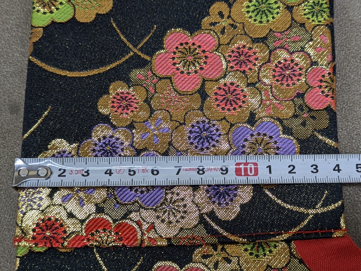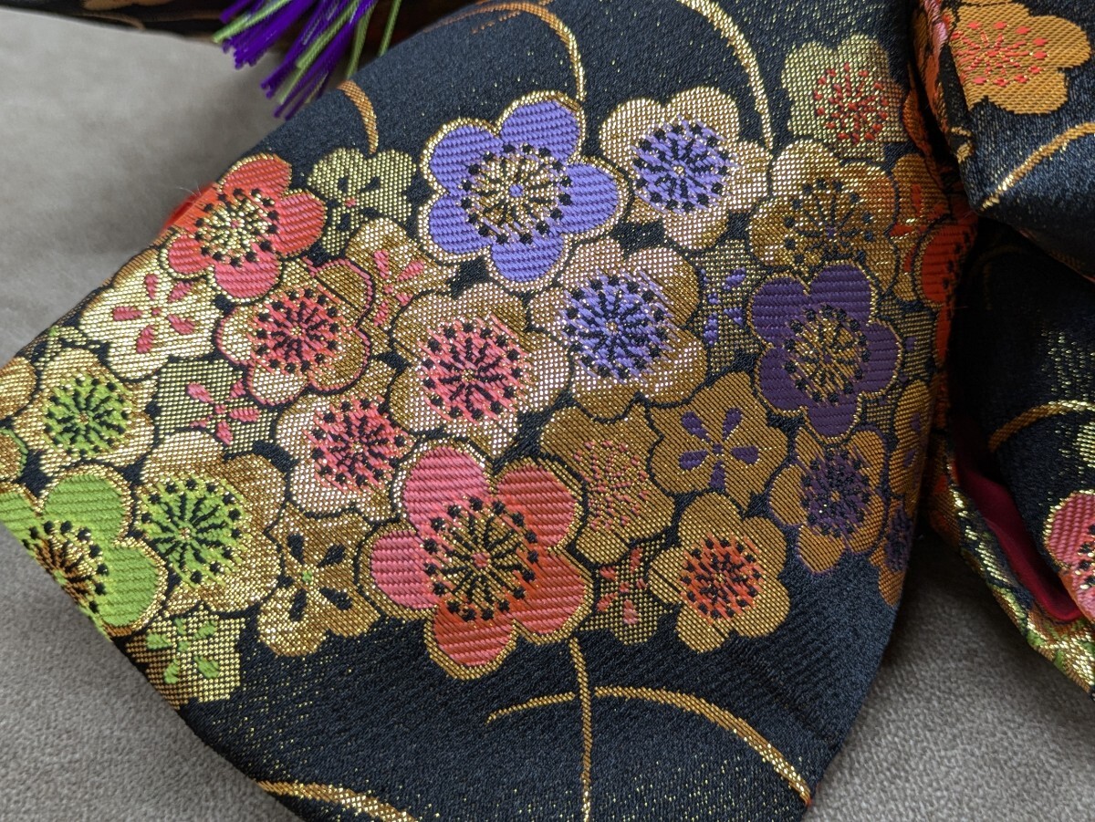 Product name: 結び帯 筥迫 鞄 黒色 子供用 5歳児用? 着付け小物 二部式帯 七五三 お正月 着物 和装小物 お祝い 古典柄 梅 花柄 和柄 胴帯幅14cm 奈良発