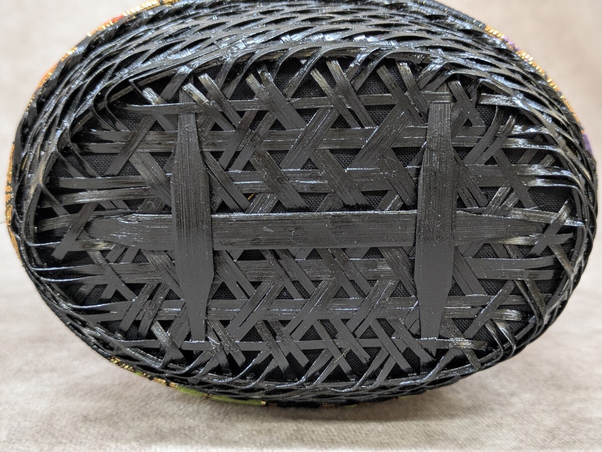 結び帯 筥迫 鞄 黒色 子供用 5歳児用? 着付け小物 二部式帯 七五三 お正月 着物 和装小物 お祝い 古典柄 梅 花柄 和柄 胴帯幅14cm 奈良発