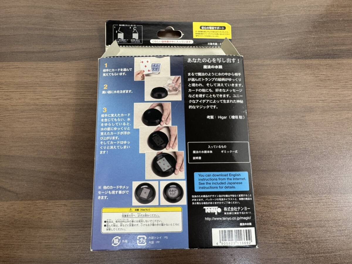 水を張った小さな黒いお皿を相手に見つめてもらうと、選んだトランプの絵柄が徐々に現れます!