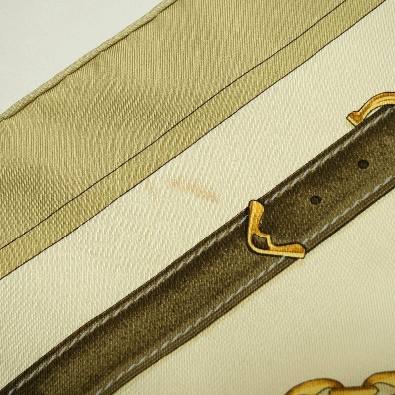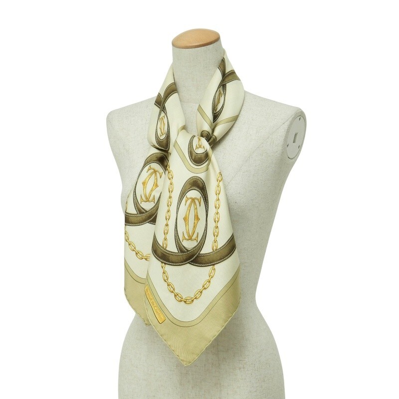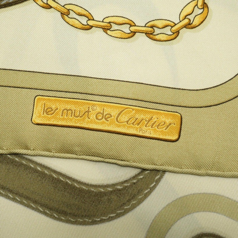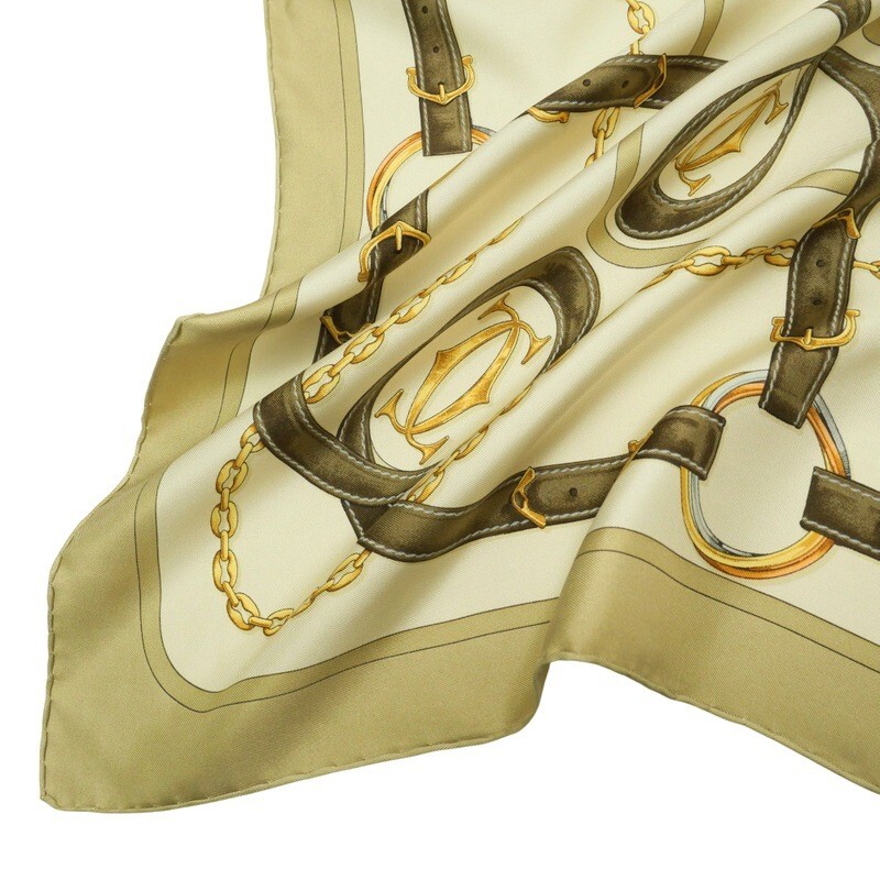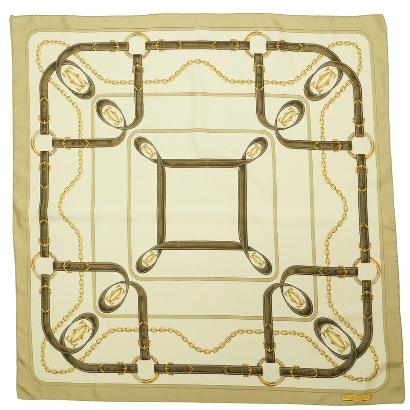 GS0479*フランス製 カルティエ must de Cartier 2Cロゴ トリニティ チェーン ベルト柄 大判シルクスカーフ ストール グリーン系