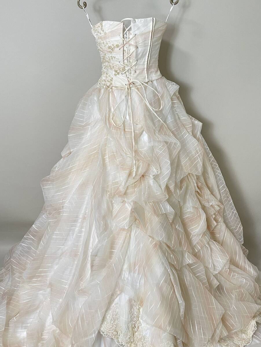 ※目立つダメージや変色・汚れについてはできるだけ記載しておりますがドレス内側や細かなダメージ等までは検品しておりません。中古品になりますので使用感・細かな傷、汚れがある場合がございます事あらかじめご了承の上ご入札ください。