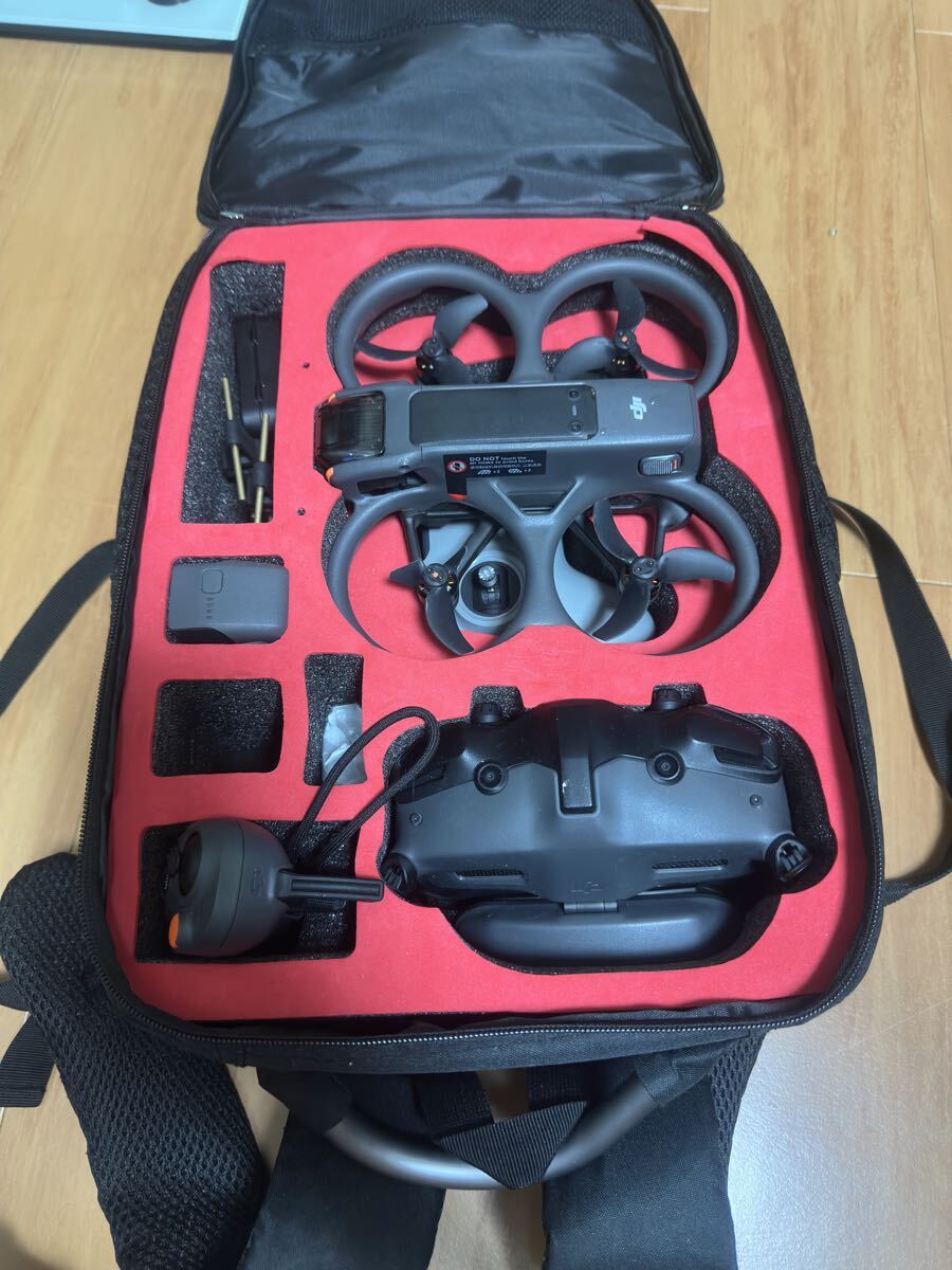 - 付属品: fpvコントローラー、モーションコントローラー、バッテリー2個、ゴーグル、電波増強アンテナ、カメラフィルター、飛行許可許可ベスト