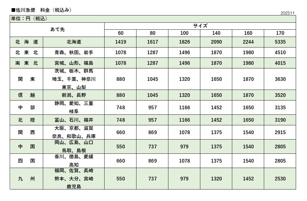 Japan Local Shipping Fee JPY Japan Local Shipping Fee Reference