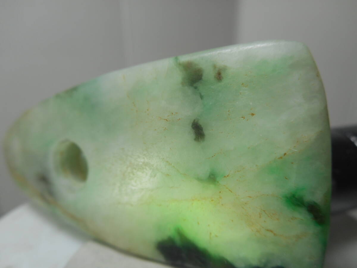 縄文、弥生、須恵器、翡翠、勾玉、硬玉大珠、魔除け石5. 8.22.J.長さ56 ミリ透明度のある宝石質ヒスイ*石斧型硬玉大珠です。