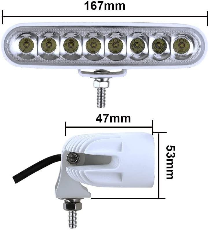 ■汎用 40WハイパワーLEDバックランプ(ホワイト) 2個セットです。5Wx8LED=40WのLEDが組みこまれているため、直視できないほど非常に明るいハイパワーLEDバックランプです。動作電圧は12V/24V兼用です。色は6000-6500Kケルビン、明るさは最大1320ルーメン、寿命約50,000時間です。防水保護等級:IP67です。本体はホワイトダイキャストアルミ二ウムハウジング製です。取り付けにはバックライト配線との結線が必要です。サイズと付属の部品は拡大画像をご覧ください。