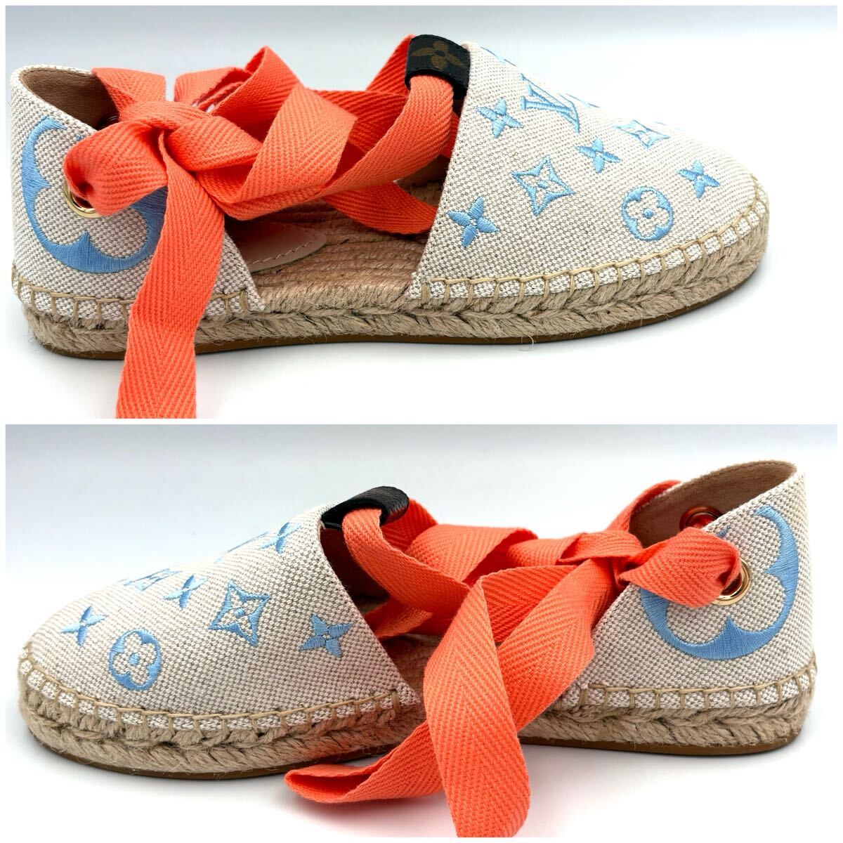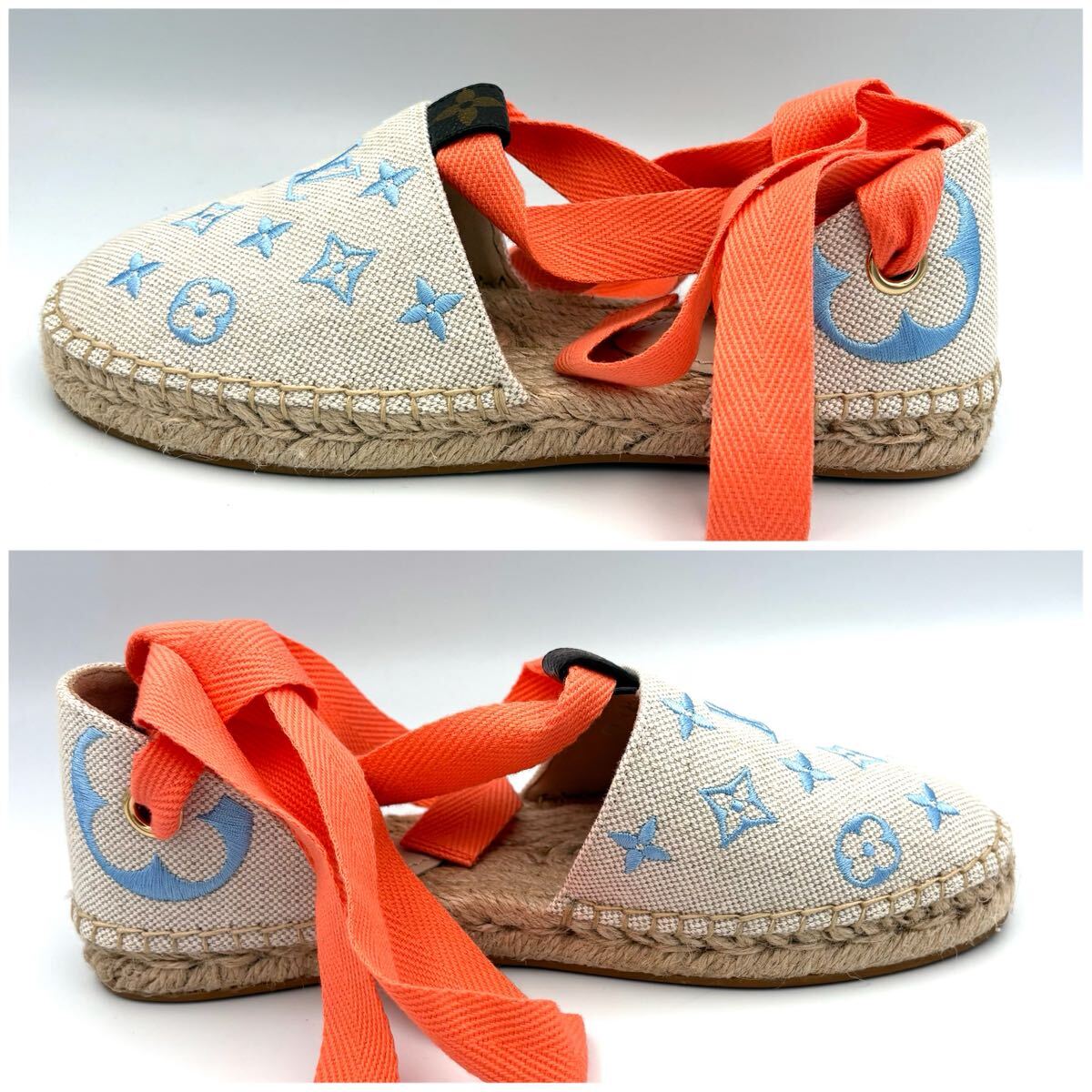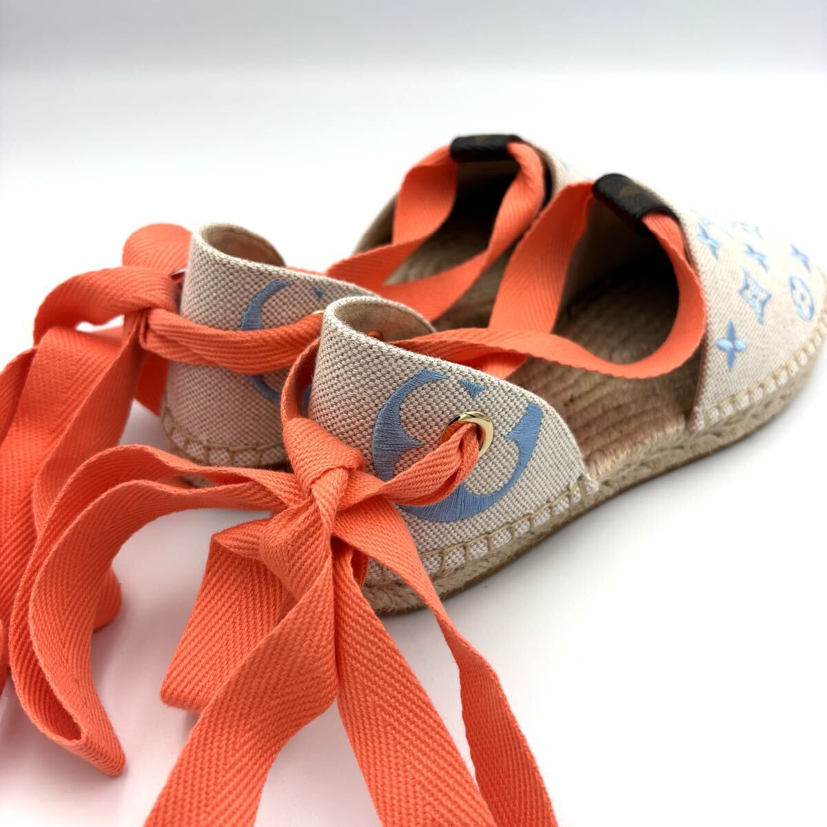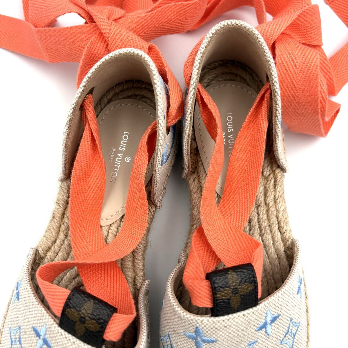 新品未使用●21ss ルイヴィトン LOUIS VUITTON サンダル エスパドリーユ レースアップ レディース リボン モノグラム LV 刺繍 35 1/2 23cm