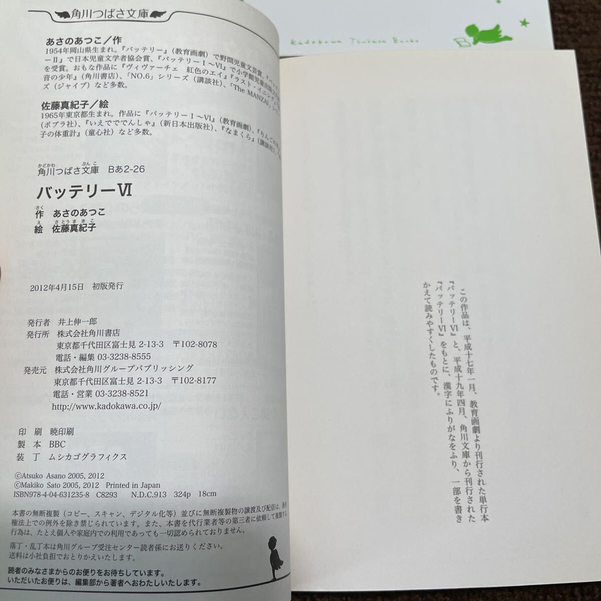 Product name: Q06●6冊 バッテリー 全6巻 あさのあつこ 小説 絵 佐藤真紀子 野球 児童文庫 角川つばさ文庫 角川書店 おろち峠 完結 250827