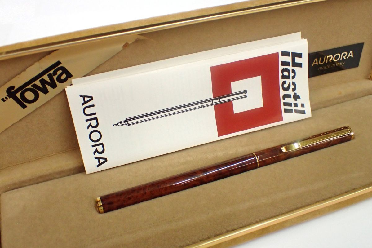 ▲筆記具154 美品 AURORA hastil アウロラ アスティル ボールペン▲箱付/イタリア製/ブラウン×ゴールド/ツイスト式/消費税0円