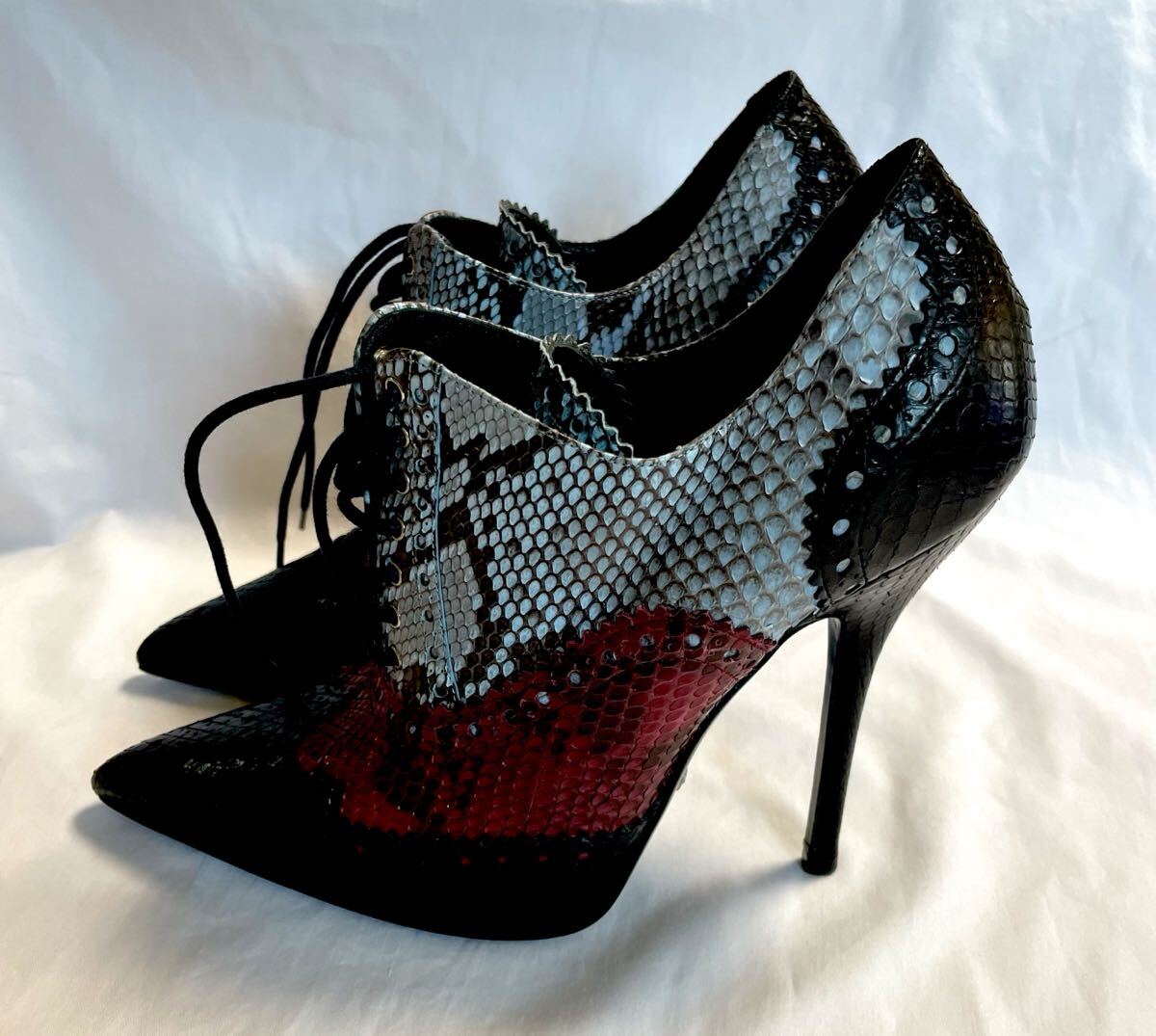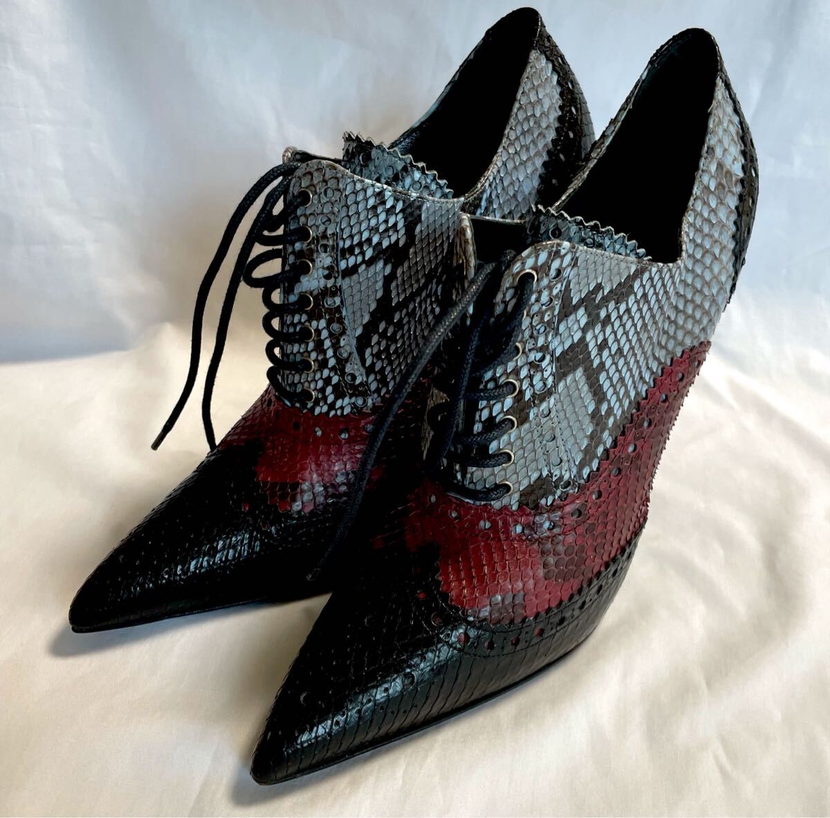 GUCCI グッチ パンプス パイソン レザー ピンヒール 37 約24cm 黒 赤 レディース  靴 シューズ レースアップ ブーティー 388570