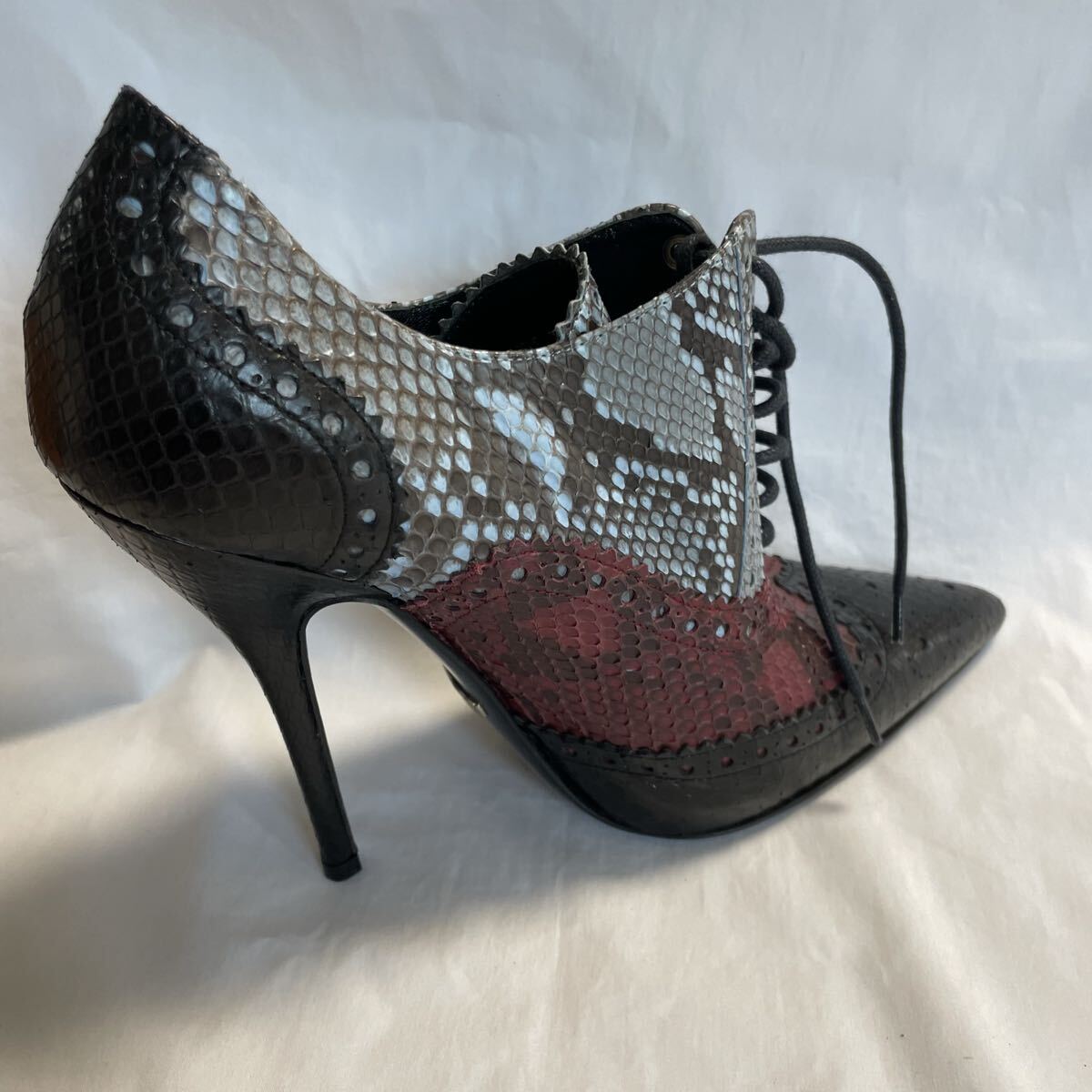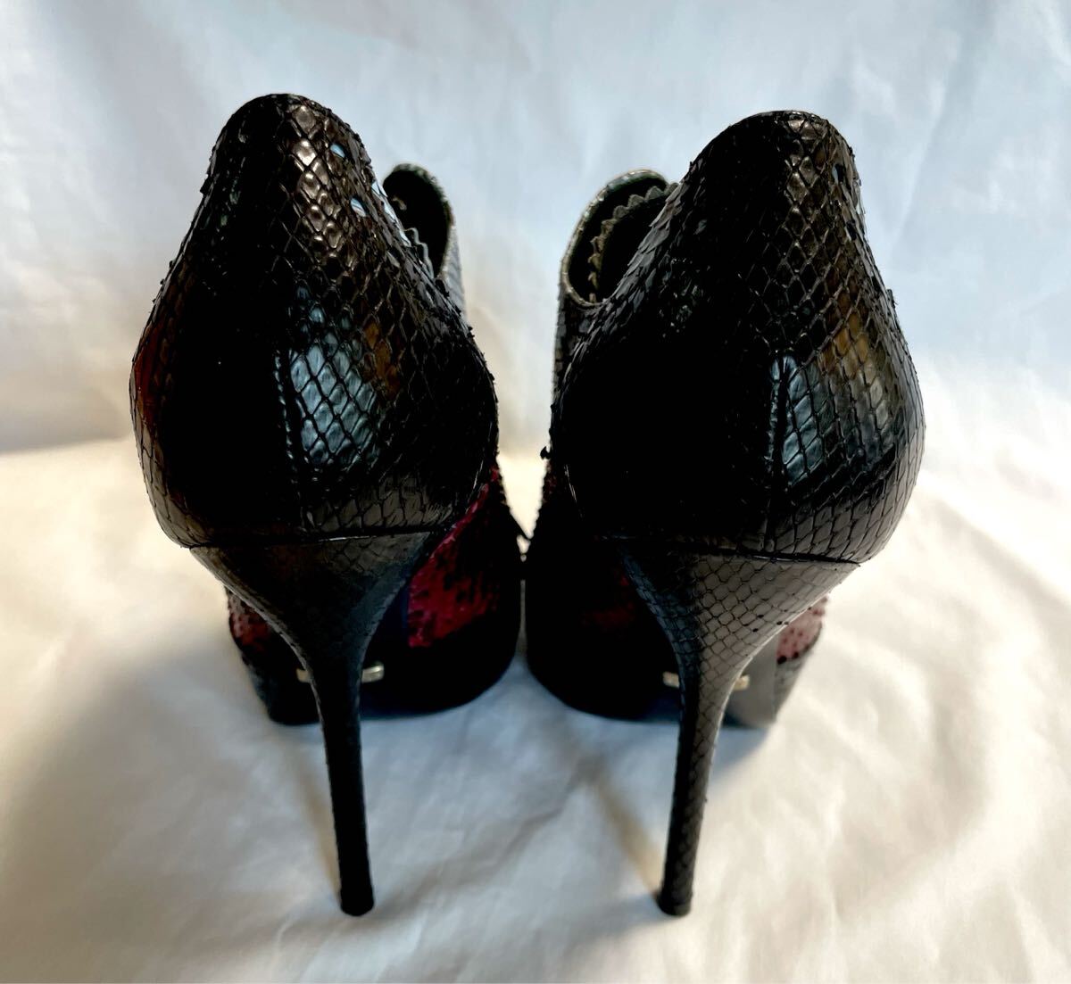 Product name: GUCCI グッチ パンプス パイソン レザー ピンヒール 37 約24cm 黒 赤 レディース  靴 シューズ レースアップ ブーティー 388570