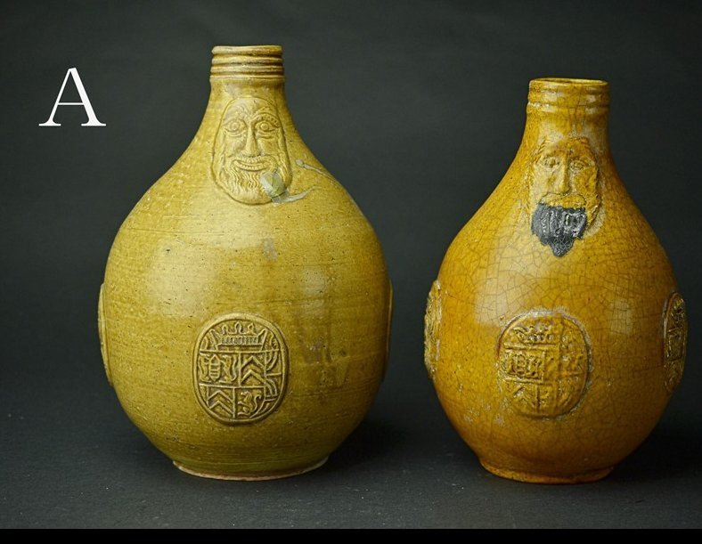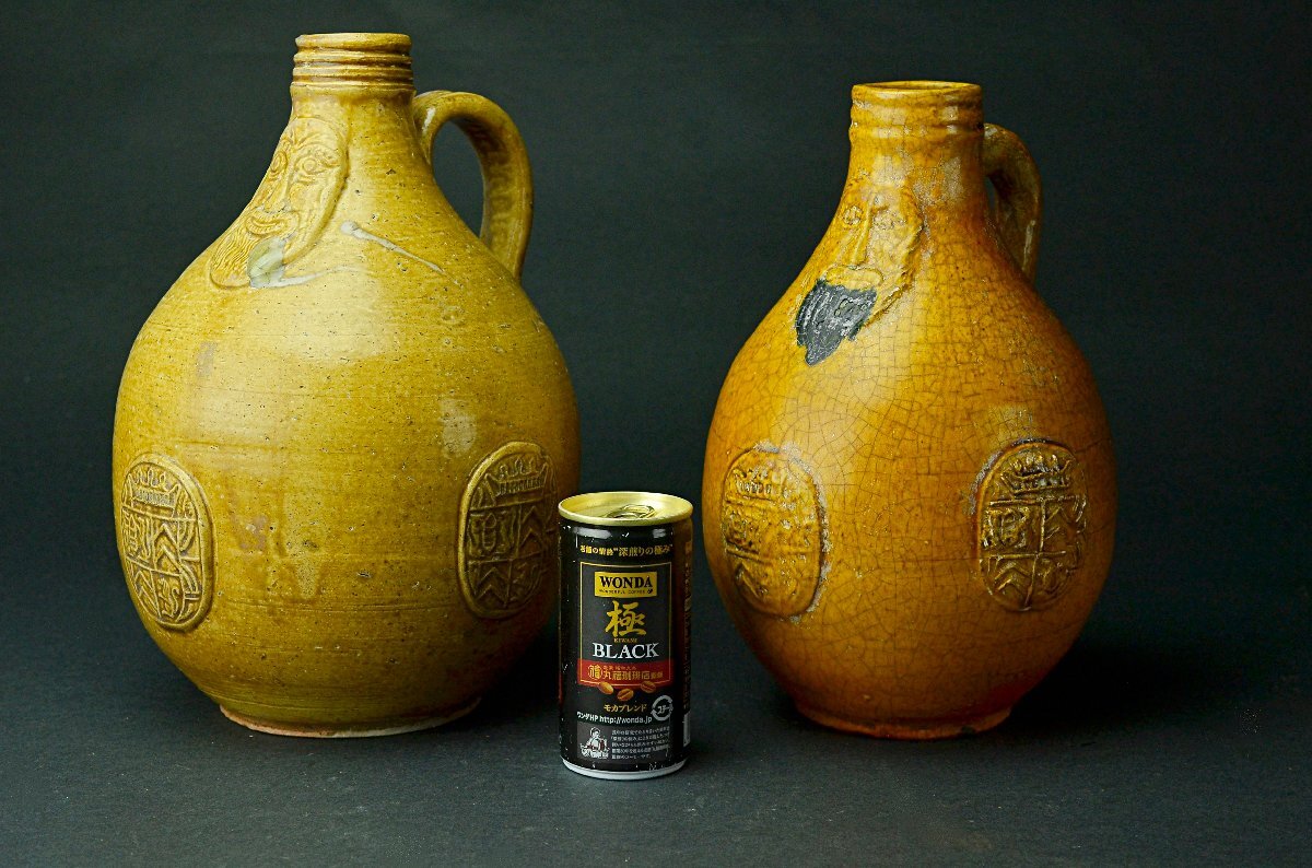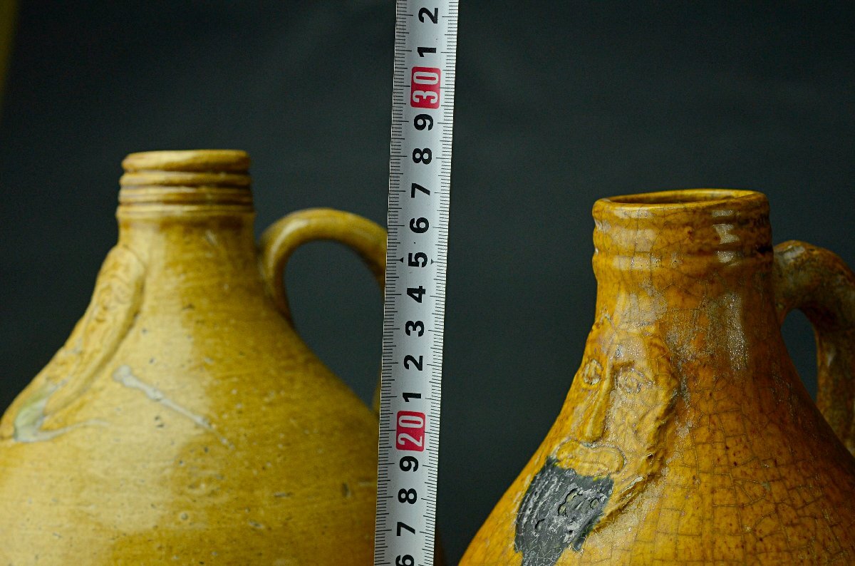 【髭徳利 A】写真左側対象商品:: 十七世紀 ドイツ 塩焼髭徳利・ひげ徳利・ 十七世紀 ドイツ 塩焼髭徳利・ひげ徳利・髭瓶 画像左「A」の作