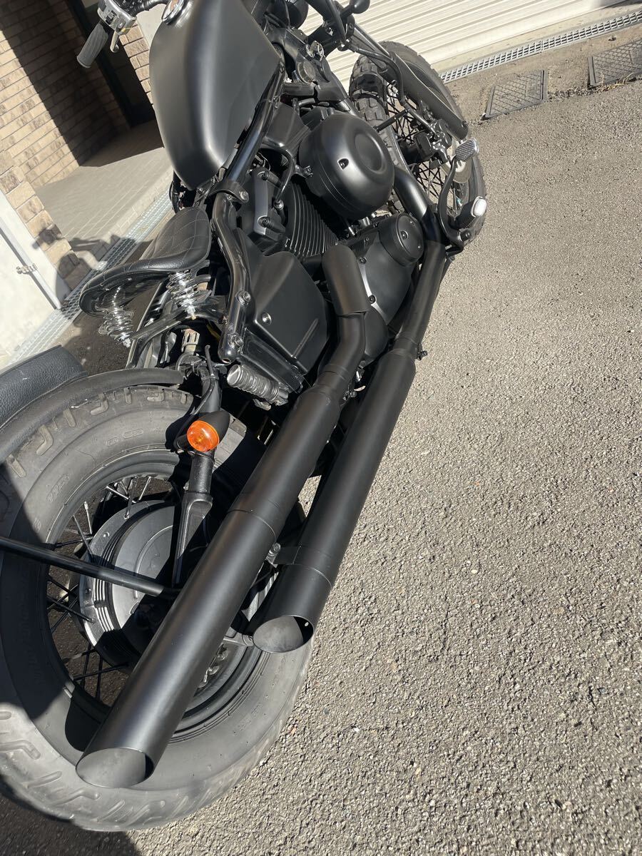 エンジンやマフラーは耐熱塗装にできるだけフルマットブラックにしましたので、かなり渋くかっこいいです!