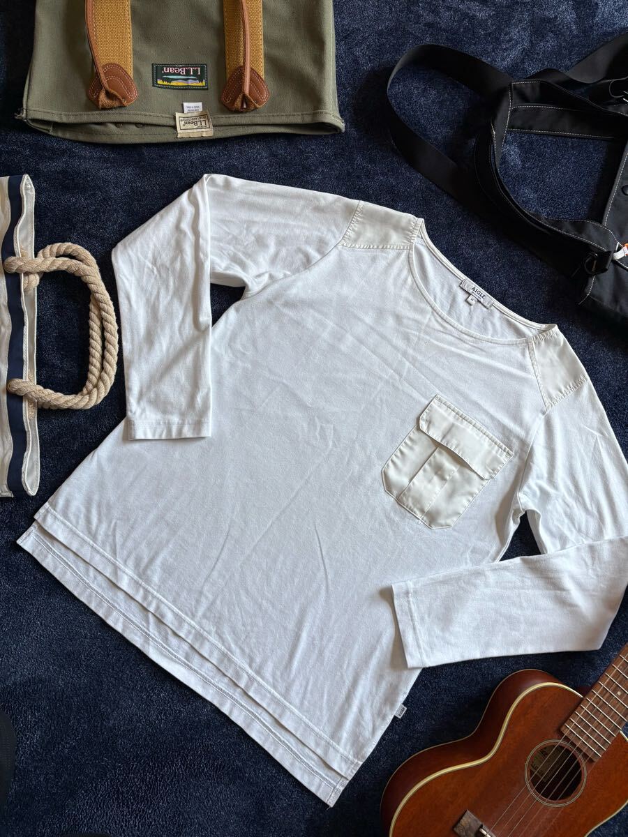 パッチポケットとショルダー切り替えで、定番の長袖Tシャツ
