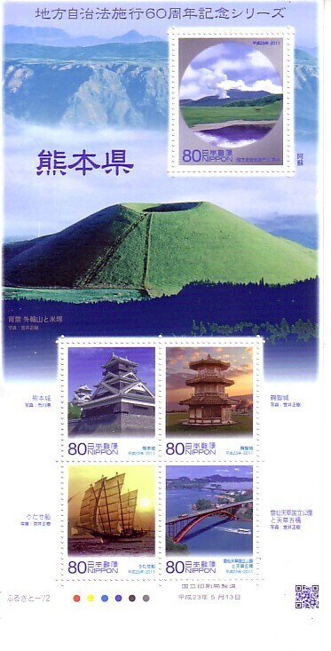「地方自治体法施行60周年記念シリーズ 熊本県」の記念切手です