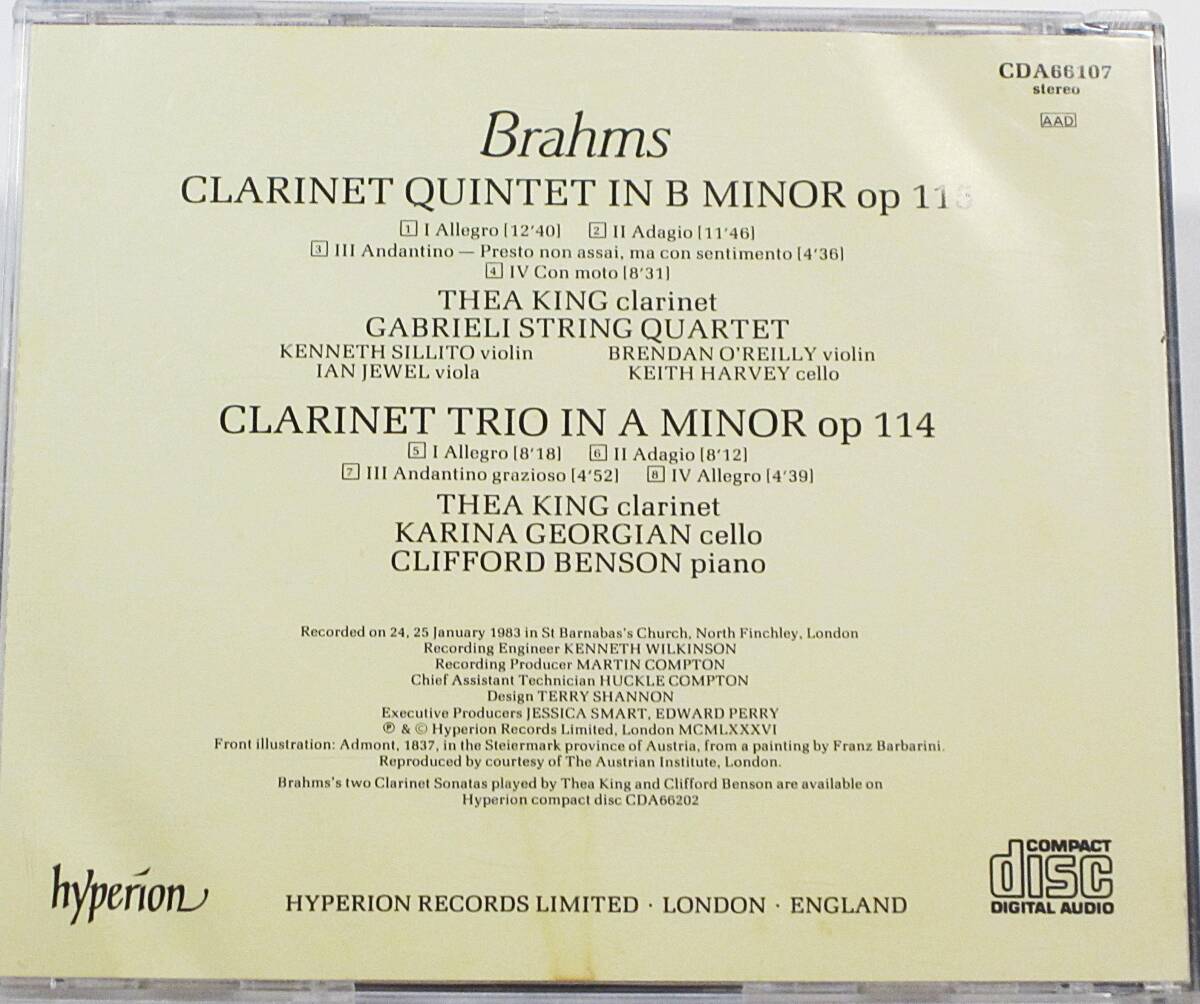 Product name: Hyperion CD◆ブラームス:クラリネット五重奏曲・クラリネット三重奏曲◆シア・キング(クラリネット)&ガブリエリ弦楽四重奏団 輸入盤