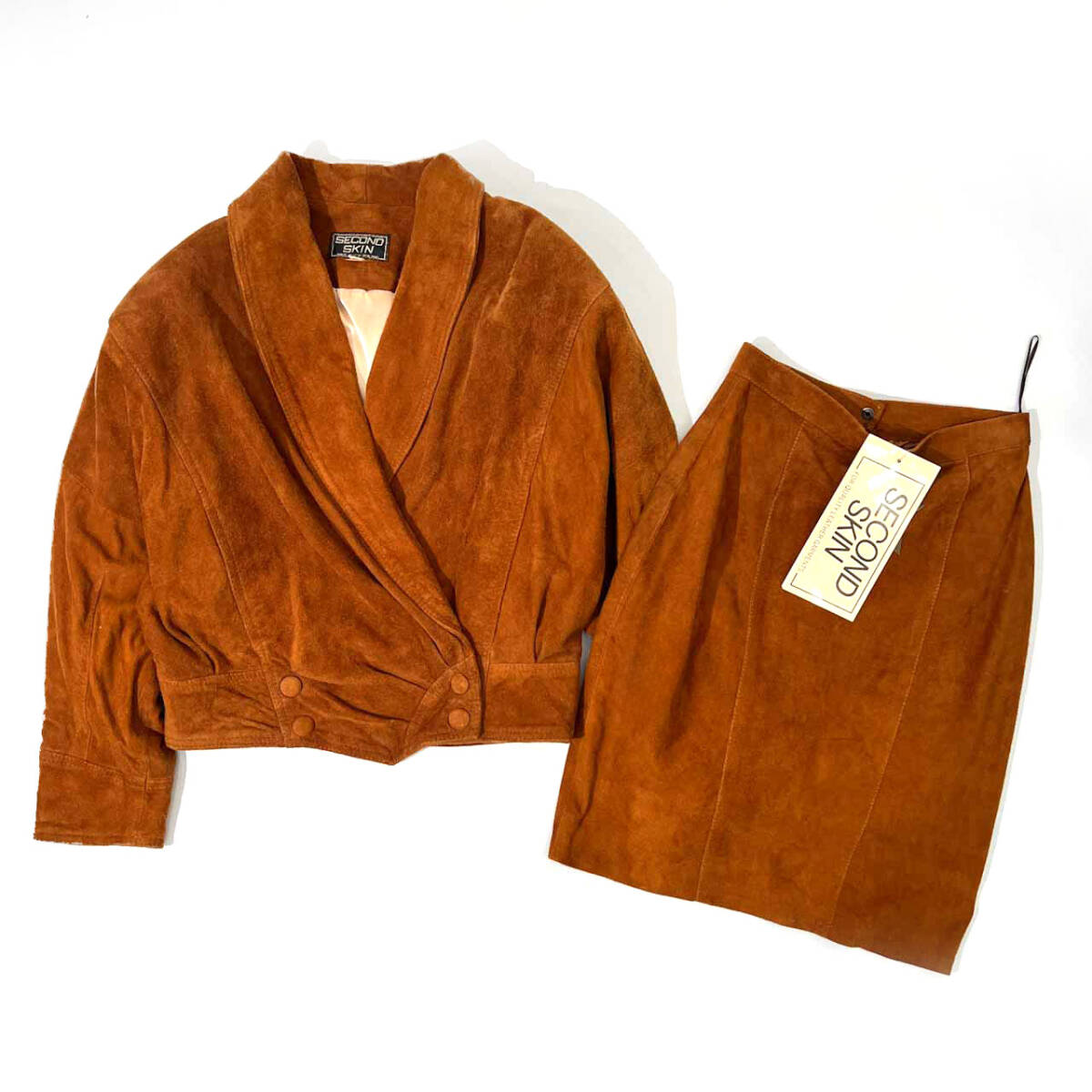 タグ付き 未使用品 ニュージーランド製 SECOND SKIN セットアップ 本革 スエード レザー スーツ 8 /上下セット/ブラウン