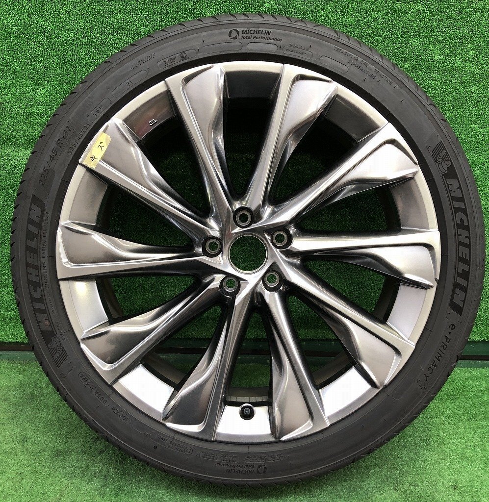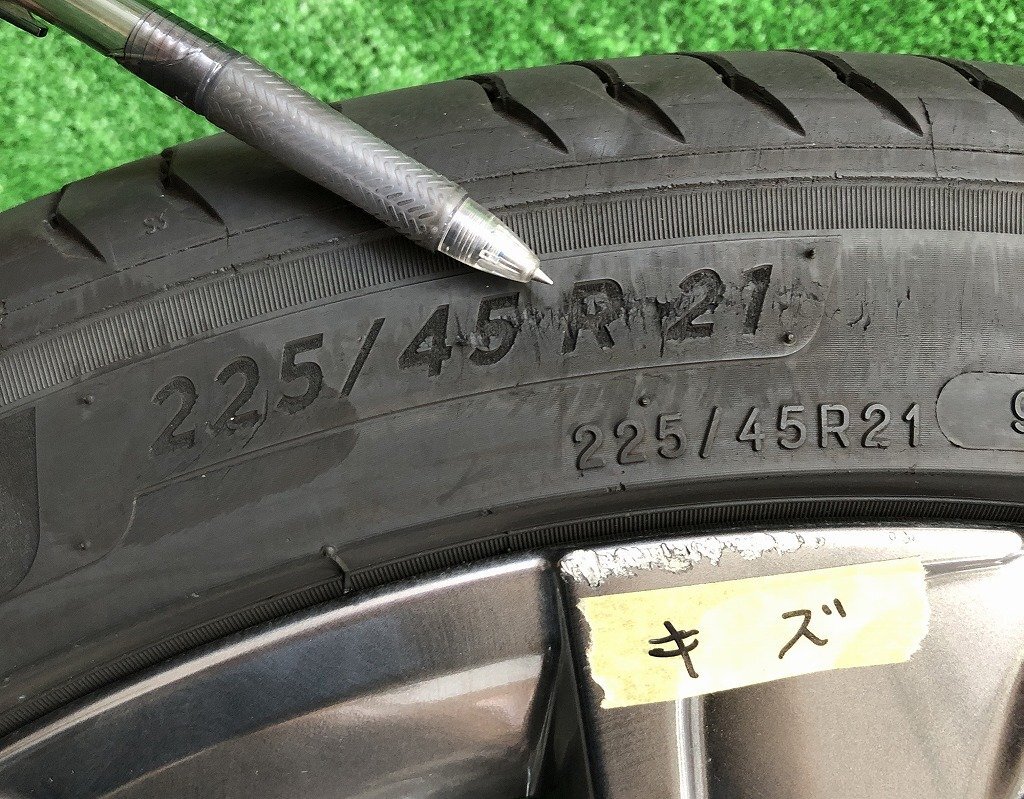 夏タイヤ ミシュラン e.PRIMACY 225/45R21 95W 23年51周期 約5.5分山。センターキャップ無し。リム傷とサイドウォールに傷有り。写真要確認。年式相応品。画像にて状態をご確認ください。