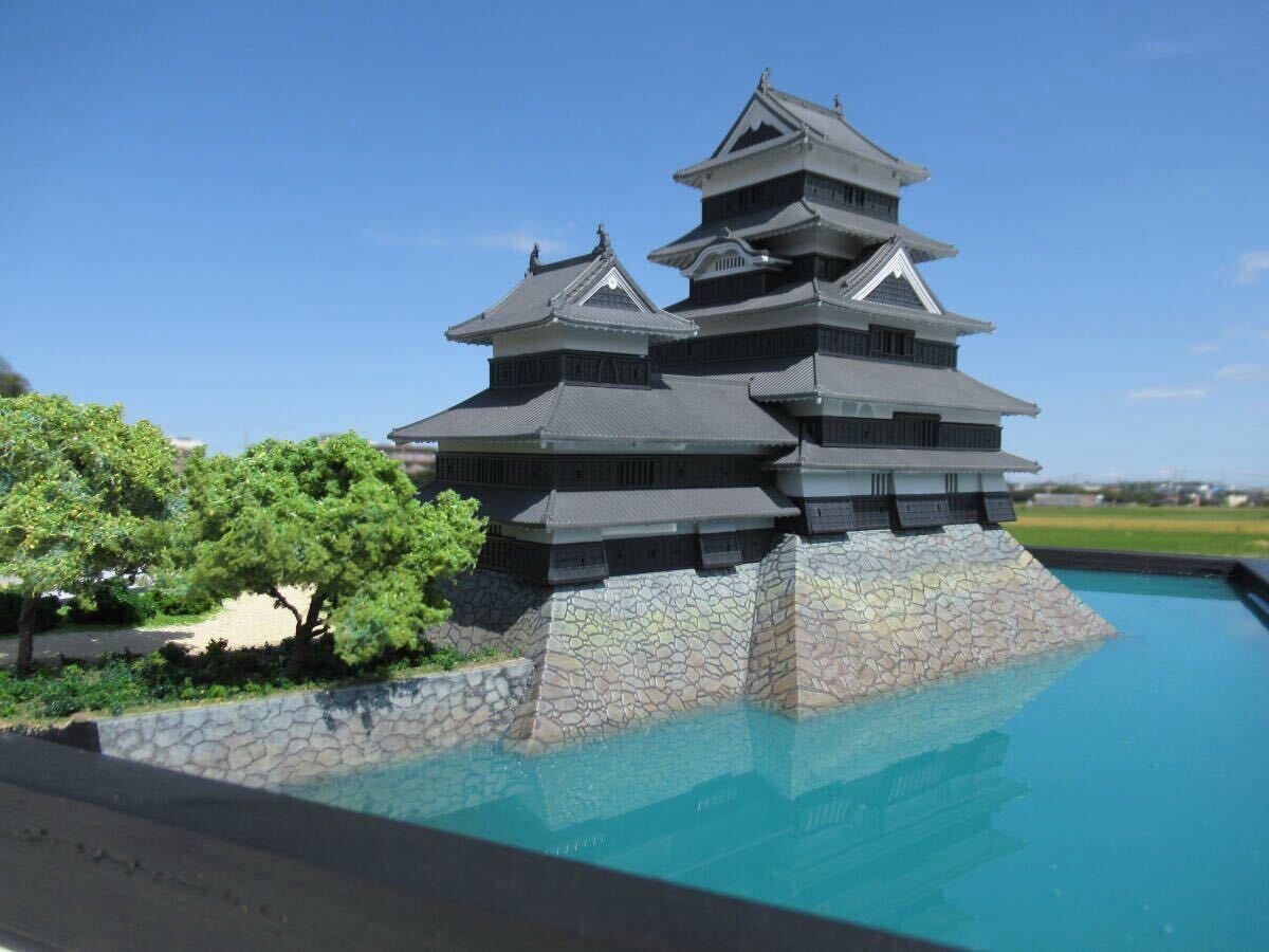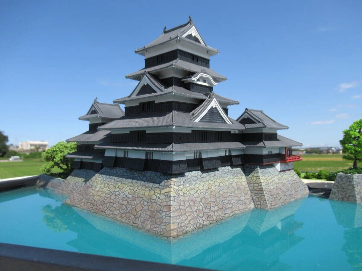 株式会社ピーエムオフィスエー (PLUM)製プラモデル 松本城 1/200 の完成品・ジオラマです。
