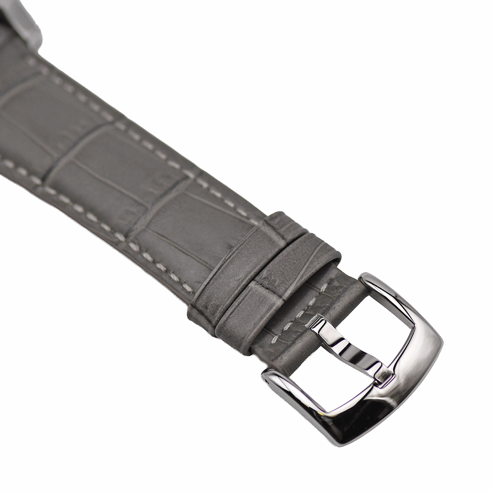当店の専属時計修理業者にて研磨仕上げ済み。文字盤の針に極々軽微なものですが腐食が見受けられます。時計本体の外装に関しては光沢も感じられ、コンディションは概ね良好です。レザーストラップは社外品ですが、新品に交換済みです。