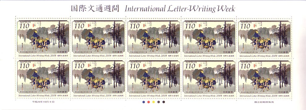 国際文通週間2008 東海道五拾三次之内 三島」の記念切手です(110円切手X10枚)。送料は普通140円(普通便 複数同梱発送では180円)になります。