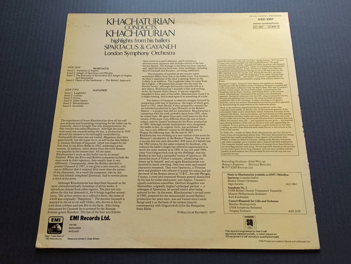 UKプレス】KHACHATURIAN / KHACHATURIAN CONDUCTS KHACHATURIAN 英EMI】 ハチャトゥリアン 英Press クラシック名盤
