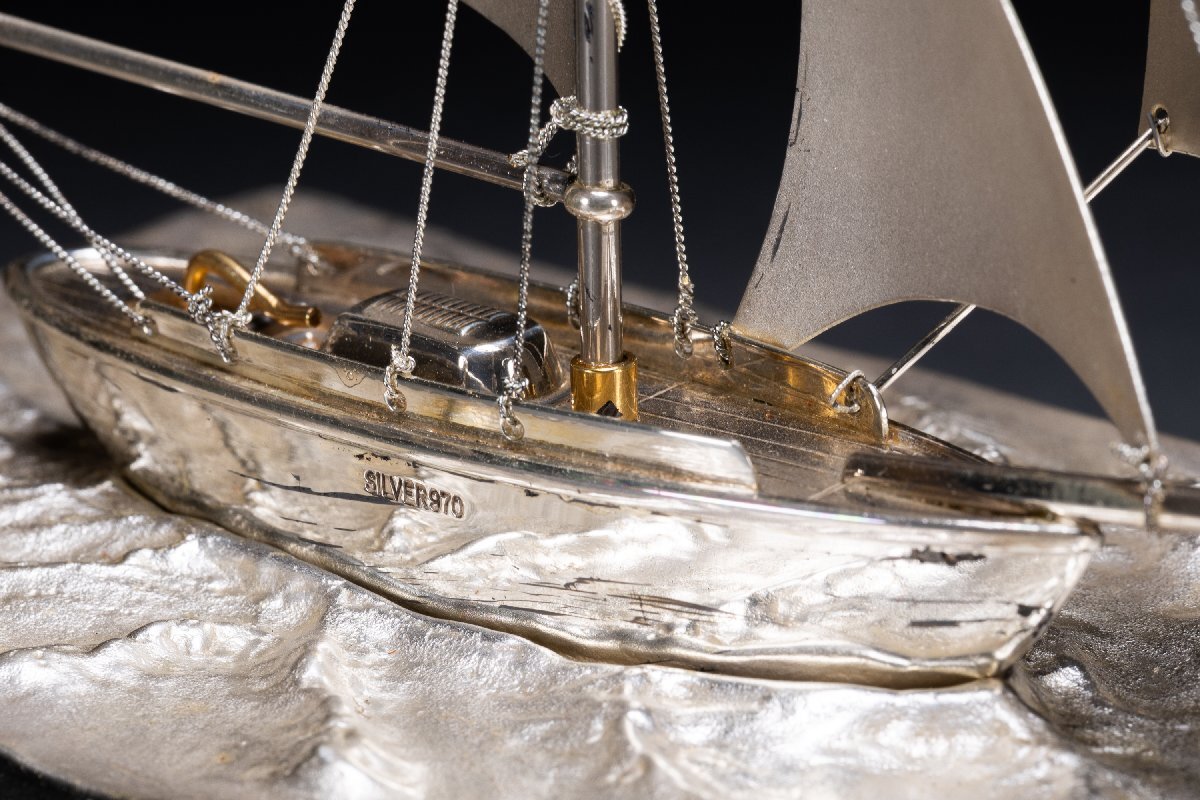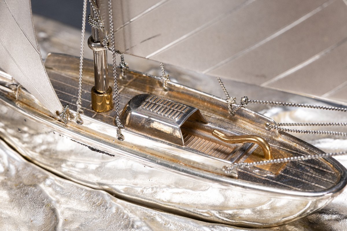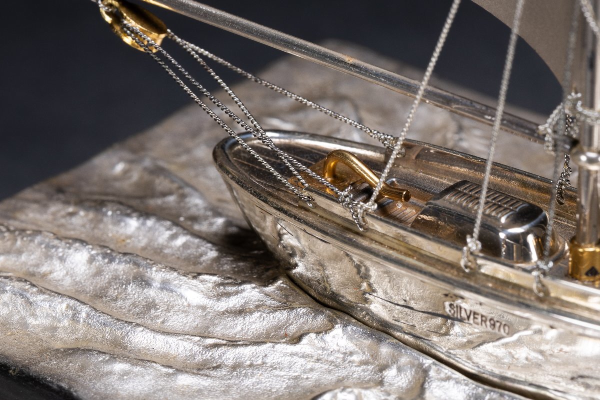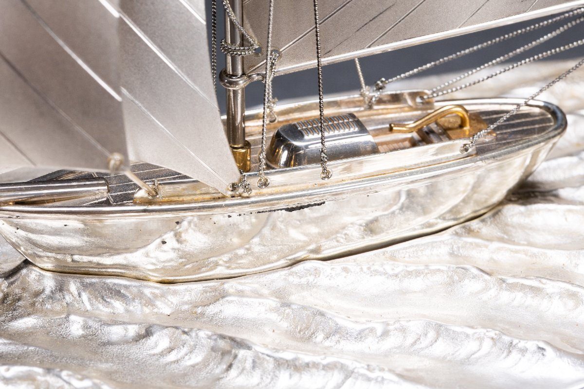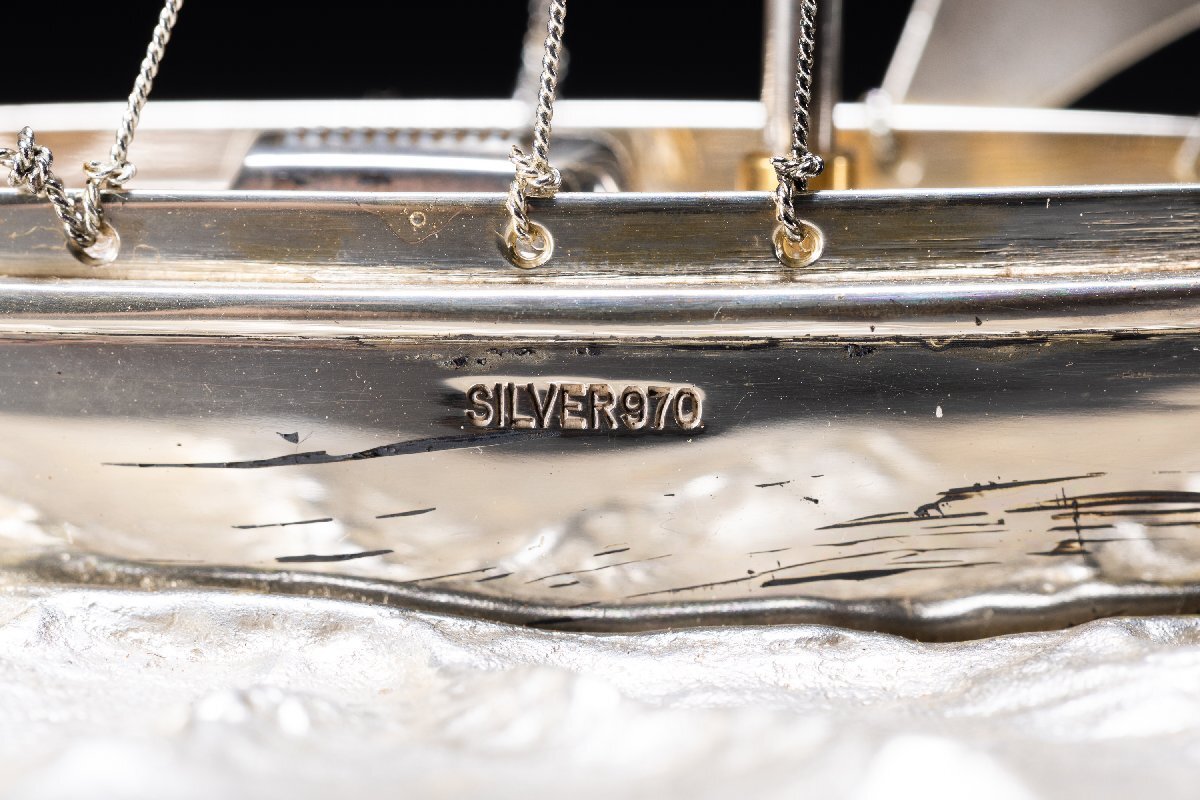 Product name: 【雲錦】某有名オークション購入 時代物 銀製 舟案頭置物 古置物 古擺件 古美術 時代コレクション9L9-80S05