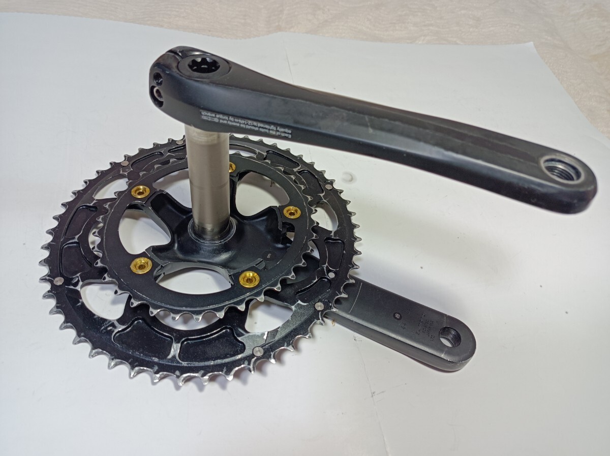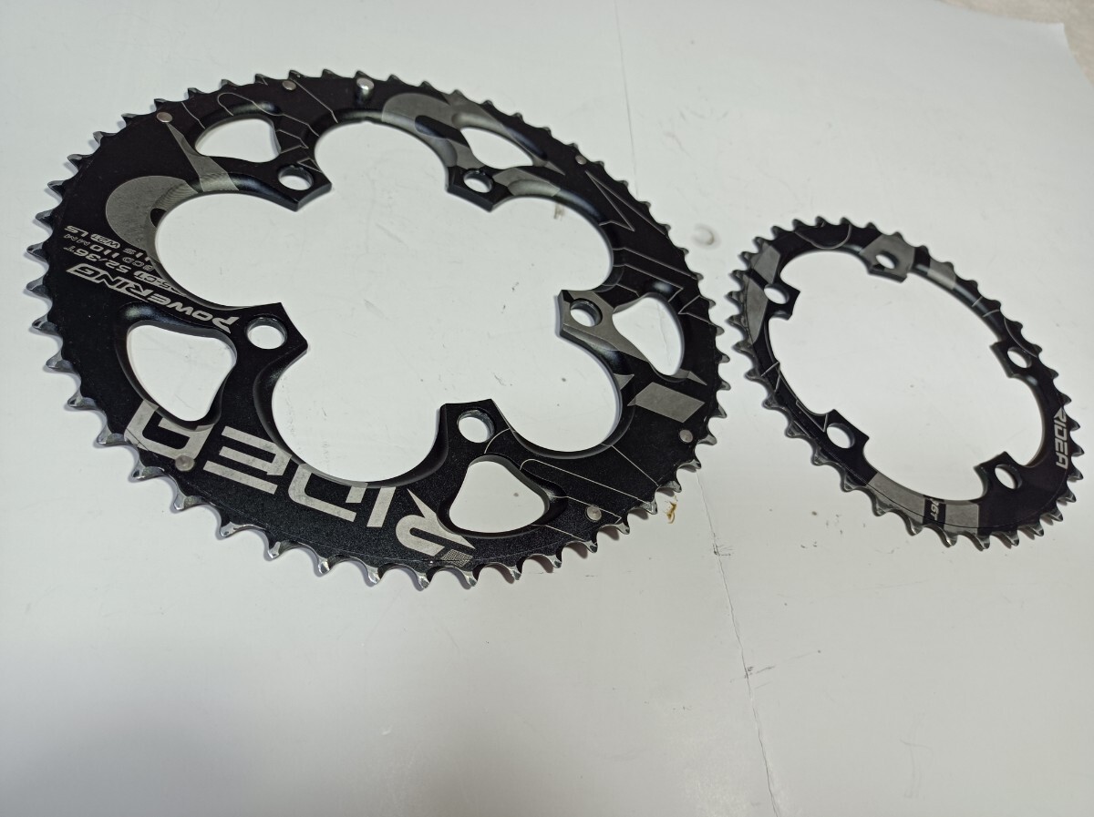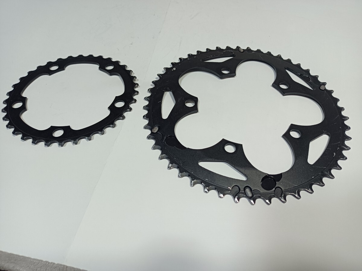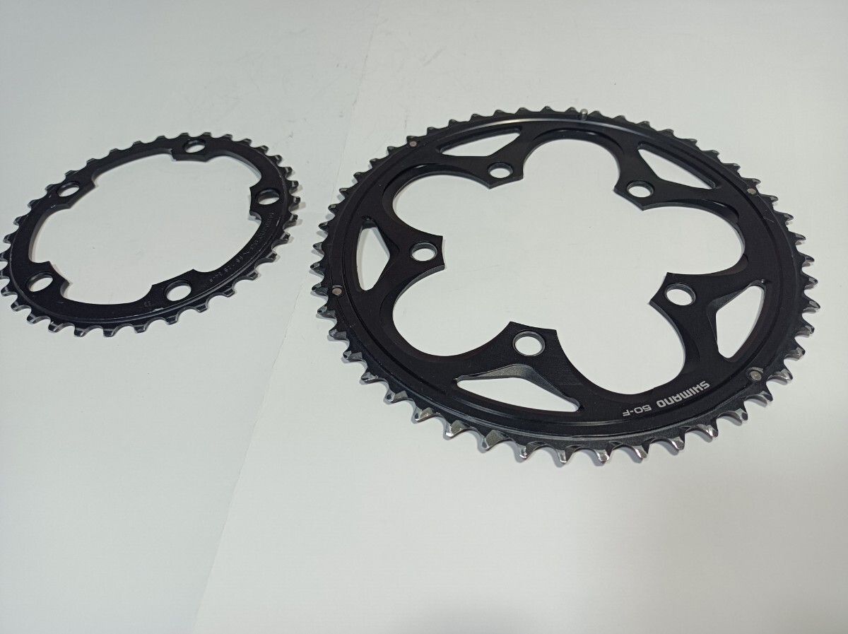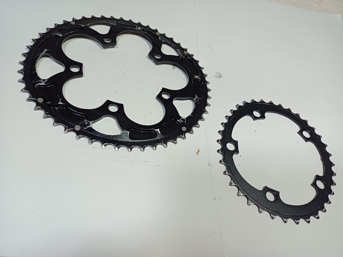 使用状況 :2025年10月まで、実際に使用していたものです。中古購入したもので、総使用距離は不明です。ブラックの普通のチェーンリング50-34T BCD110mm(それなりの使用感) をおまけに付けます。